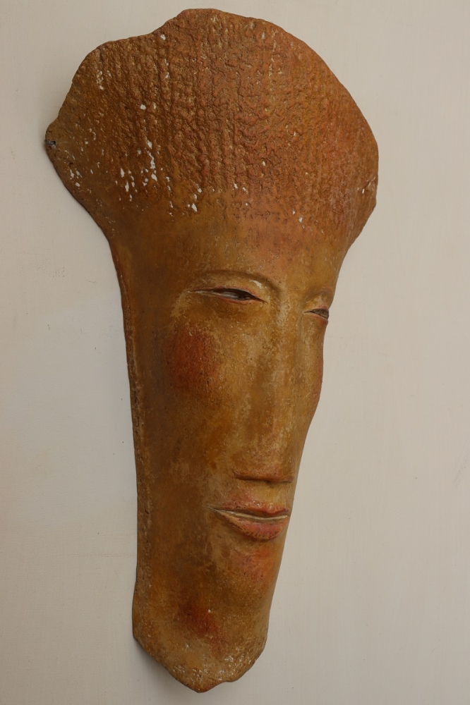 Wijsheid Gepolijst steengoed Sculptuur reliëf hangend aan muur Martiene Stevens, 1951-Maastricht. Professioneel kunstenaar. O.a. twee exposities Natuurhistorisch Museum Maastricht. Chateau Oostwegel. Maastricht, Kerkrade. Exposities in gerenommeerde galeries in Nederland. Auteur van een 8-tal boeken . Eigenaar van Kunsthuis-Trobar in Riemst B. Vooral in de natuur vind ik mijn inspiratie. De laatste jaren maak ik naast sculpturen van brons en steen, vooral houtsculpturen van gevonden stukken hout uit bossen, velden, aan zee, etc.