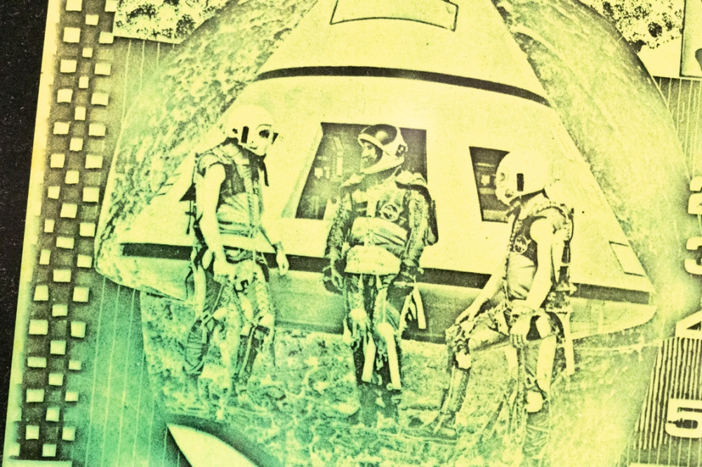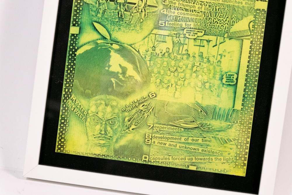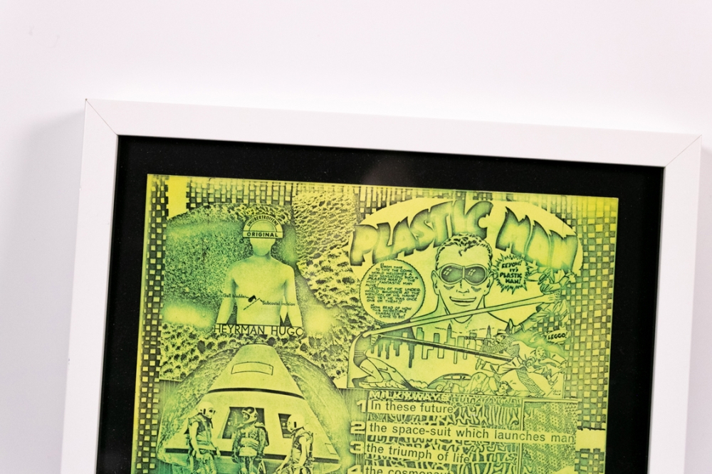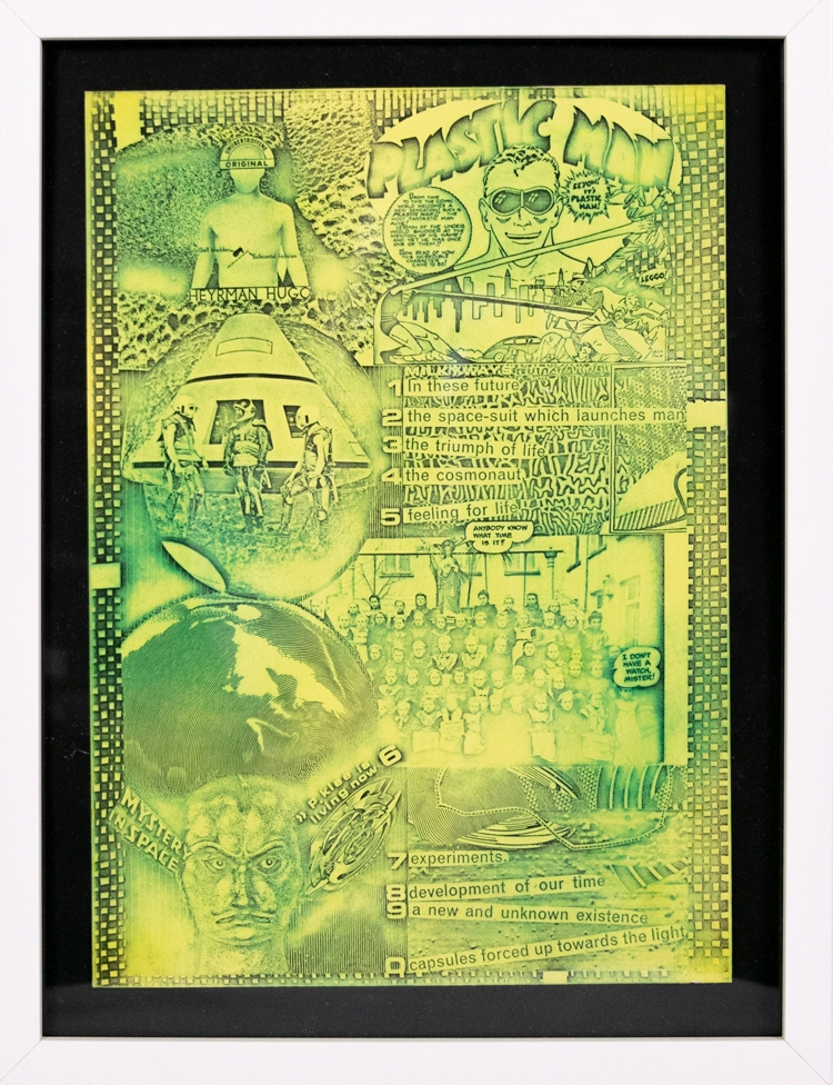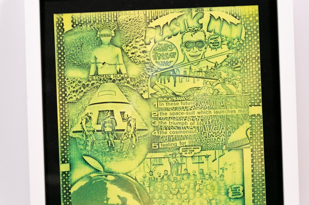Print from the Milkyways and Happenings period, early in Panamarenko's career. At the time, this was a collaboration between Hugo Heyrman, Panamarenko, Wout Vercammen and Guy Mees. Framed in a sober frame with plexiglass.
