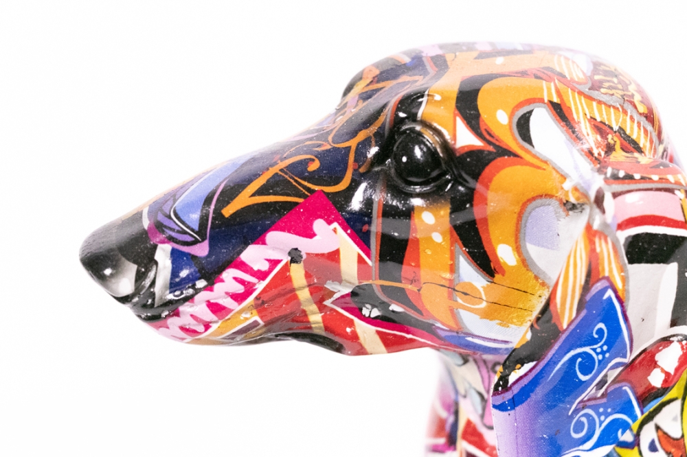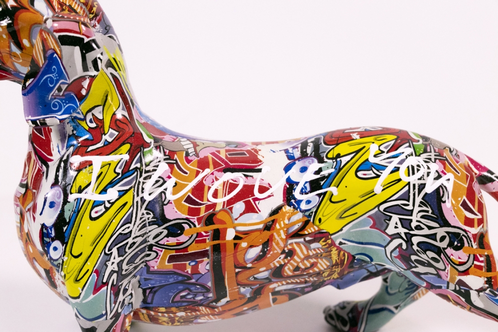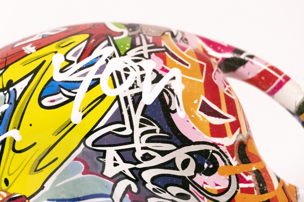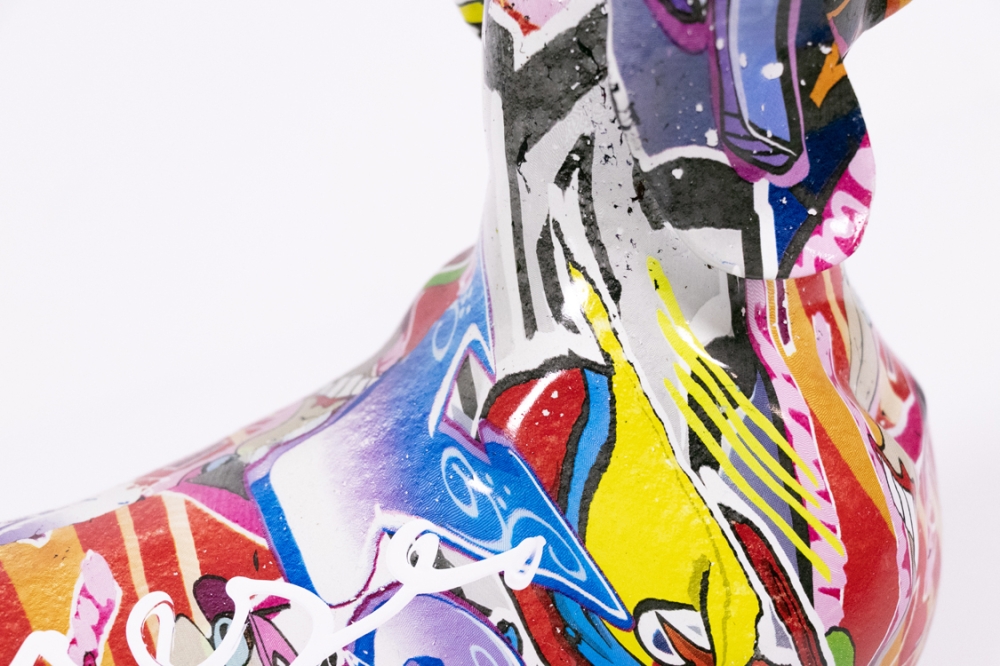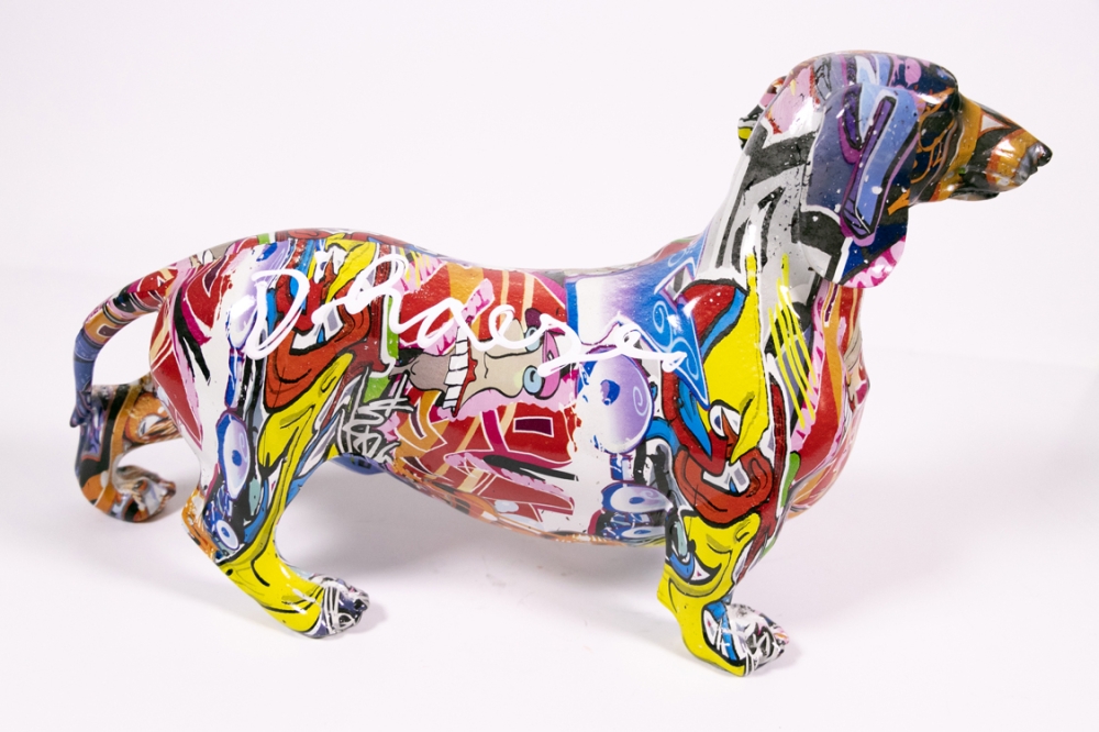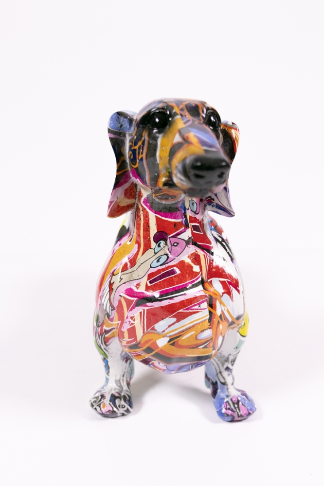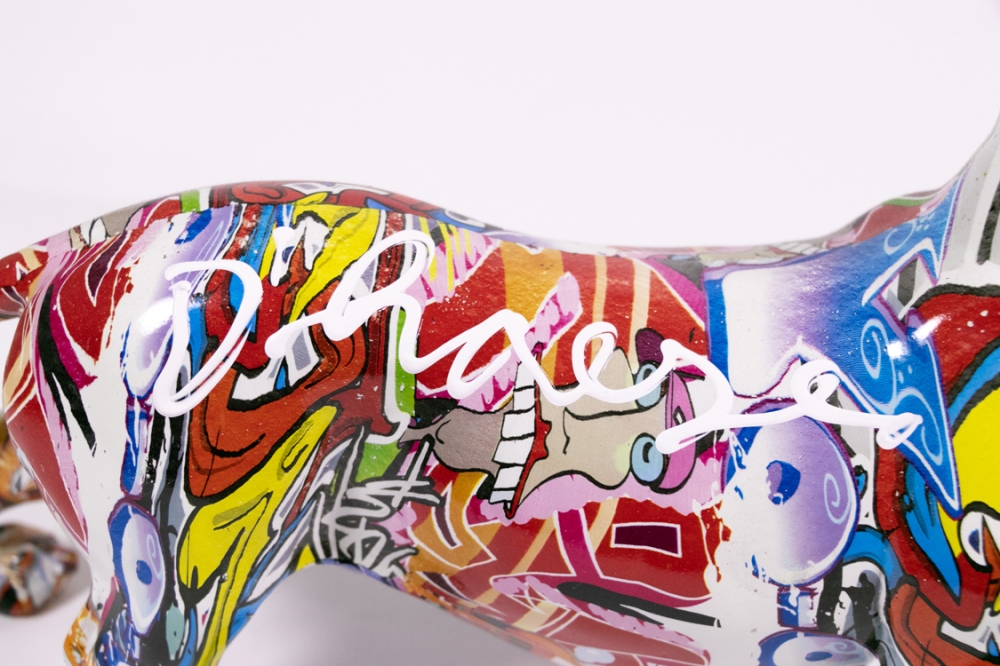 Resin sculpture by Hannes D'Haese. Completed with an inscription and signature in acrylic paint.