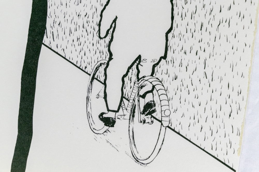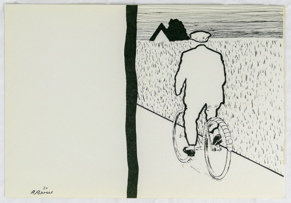 Offset print by Roger Raveel of the work "Father on a bicycle ride" from the magazine or bundle "Revolver". Volume 6 number 1 was a booklet with two lithographs and 15 offset prints.