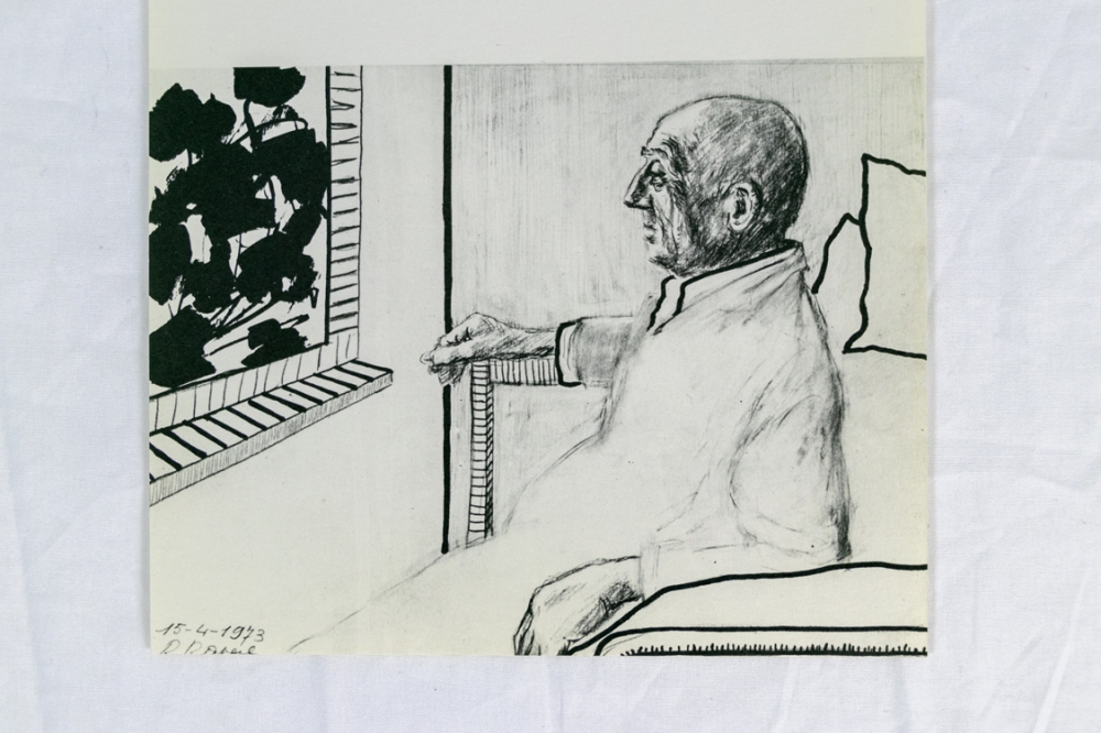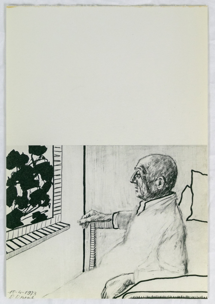 Offset print by Roger Raveel of the work "Vader op sickbed" from the magazine or bundle "Revolver". Volume 6 number 1 was a booklet with two lithographs and 15 offset prints.