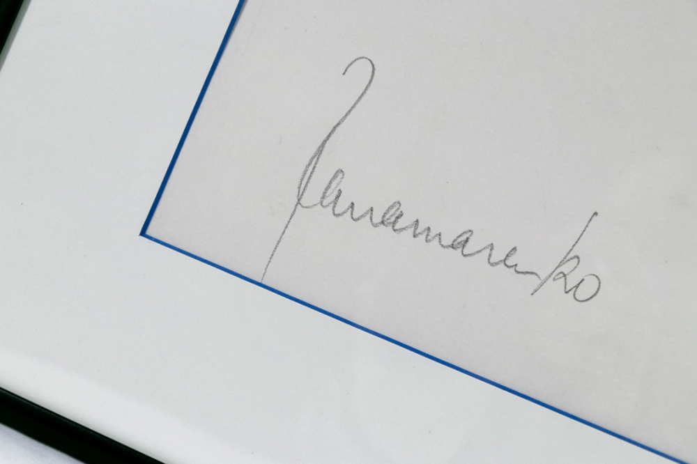 What is special about the work is that it contains a writing error. The text mentioned on the work "Propane gas word" must be written with dt. This is what characterizes Panamarenko.