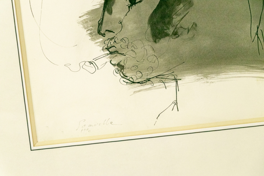Tekening met chinese inkt van Roger Somville. Werk in uitstekende staat. Het kader is in goede staat, heeft lichte tekortkomingen.