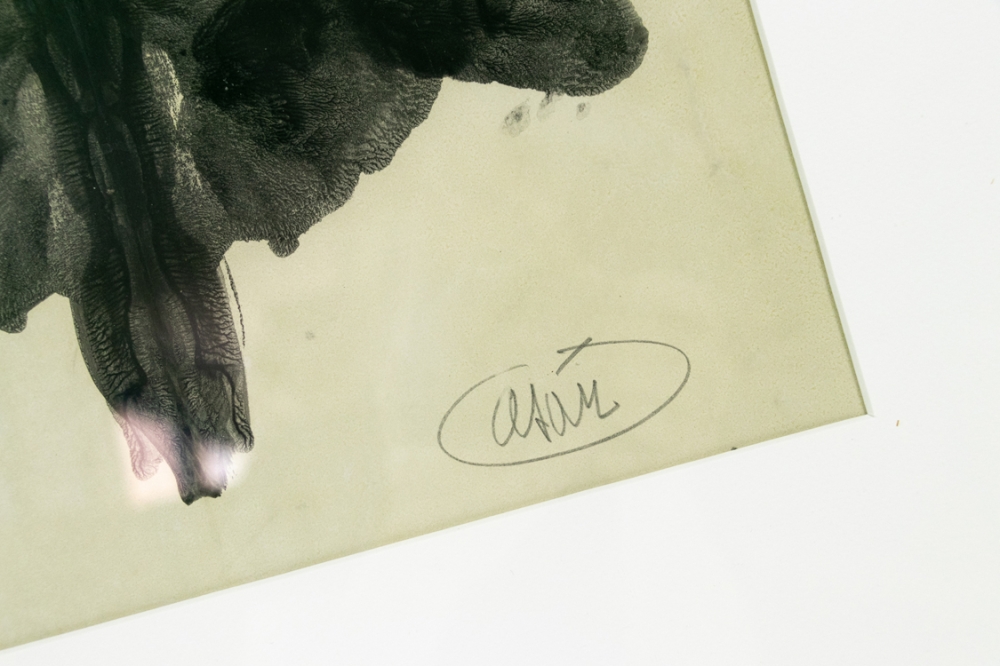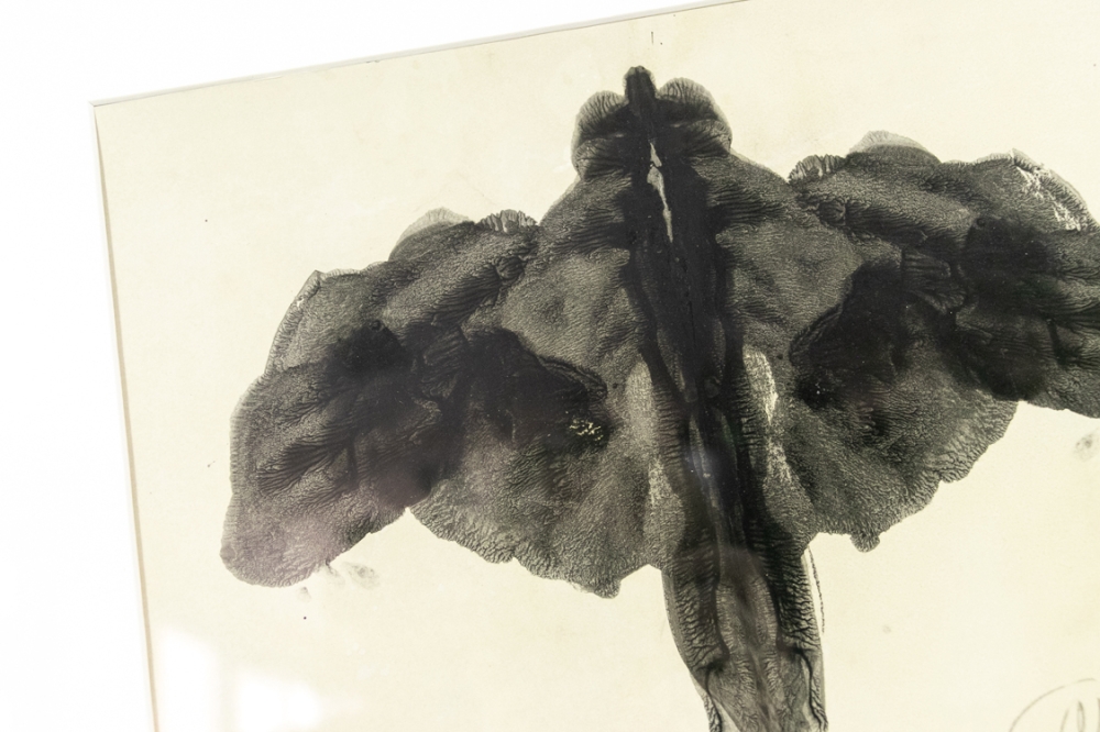 Inkttekening van Cesar Baldaccini op papier. De 'inktvlek' doet denken aan de bekende Rorschach test, bedacht in 1920 door Hermann Rorschach en is er ook een hommage aan.