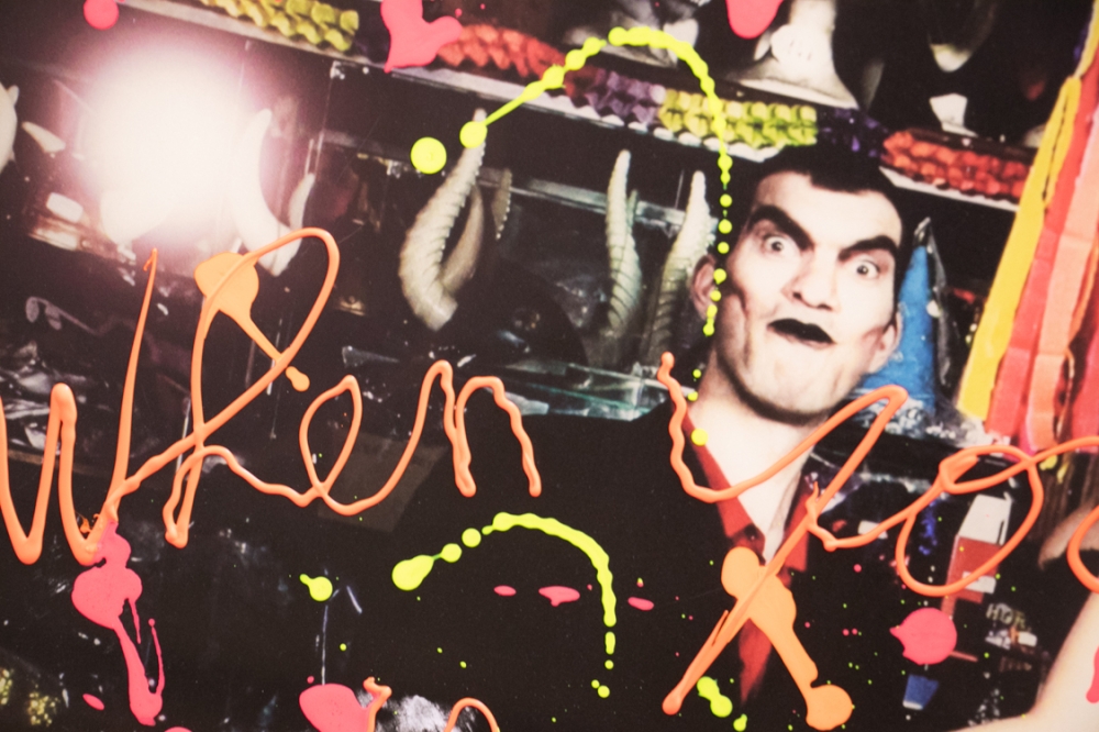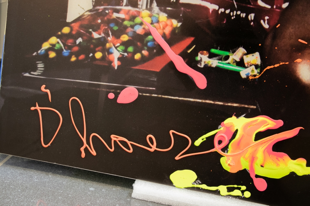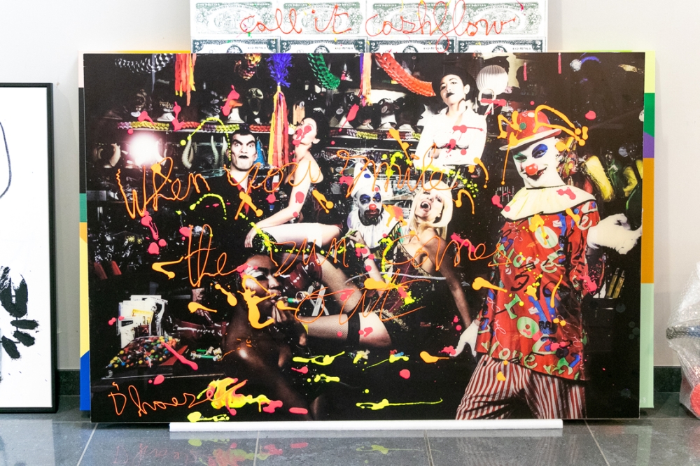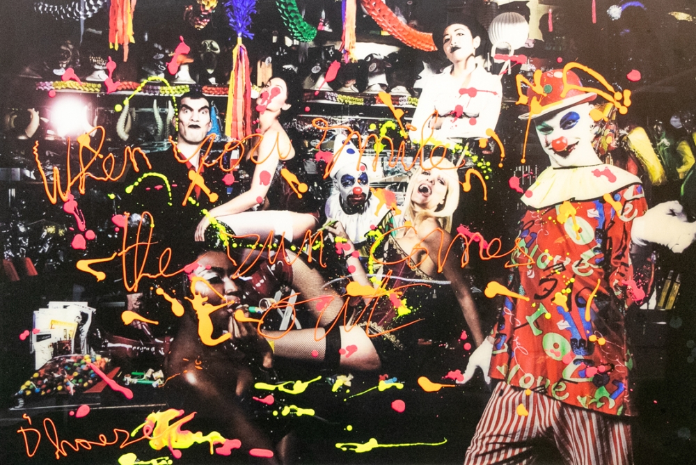 Schilderij met acrylverf op dibond paneel/print van Hannes D'haese. Het werk heeft als opschrift "When you smile the sun comes out".