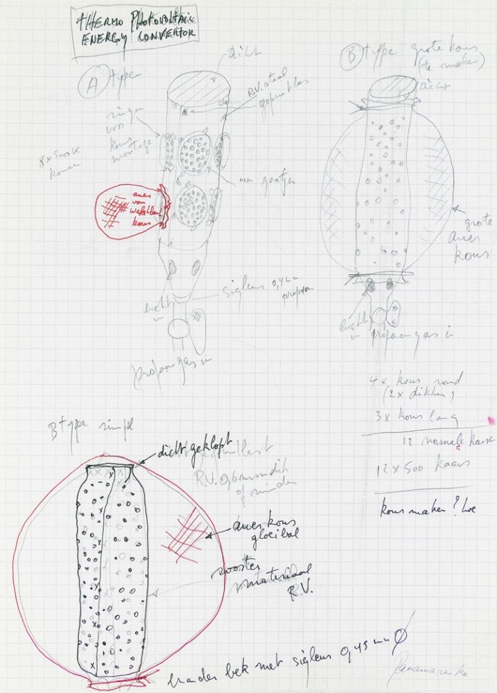 This work was shown for the first time in the exhibition "Thermo Photovoltaic Energy Converter" on October 21, 2001 in the winter garden and exiting room of the Antwerp Zoo, organized by Ronny Van de Velde.
