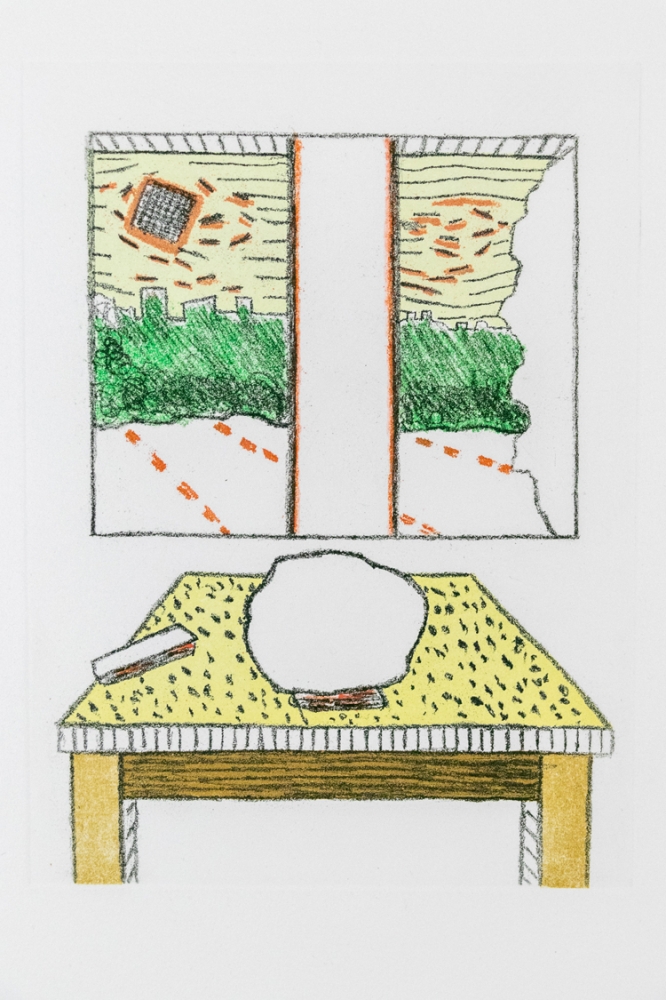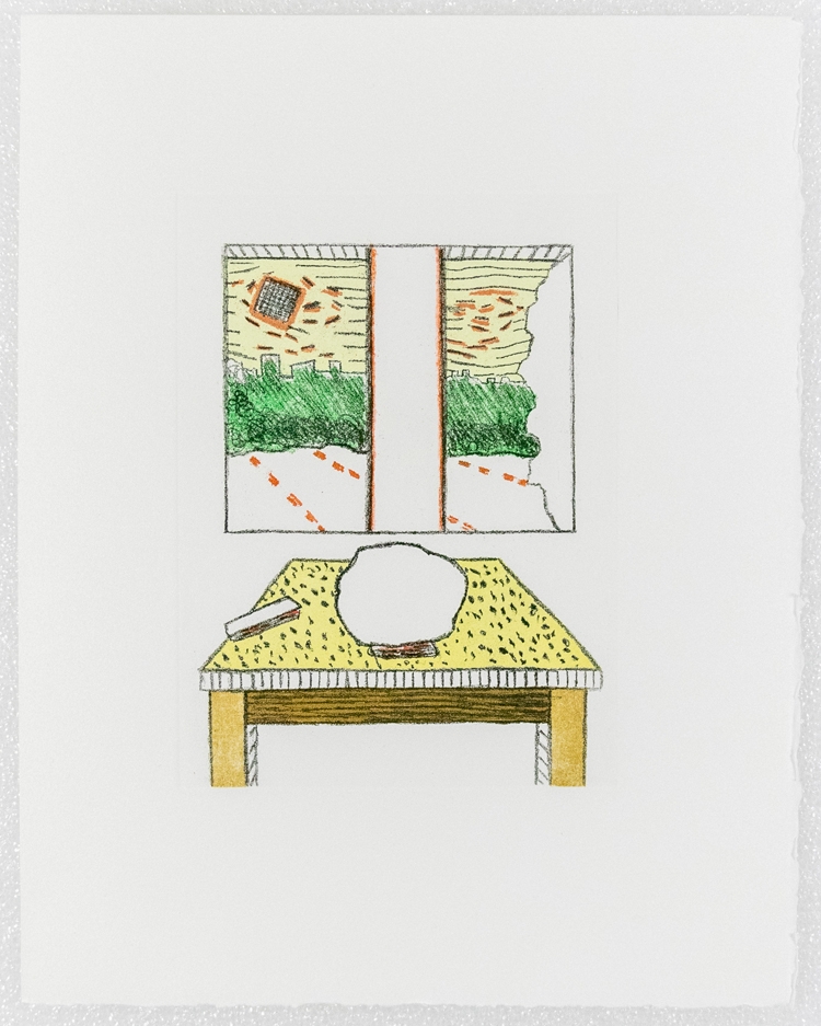 Etching by Roger Raveel, entitled "A landscape thought in the emptiness of a landscape". The work is unsigned.