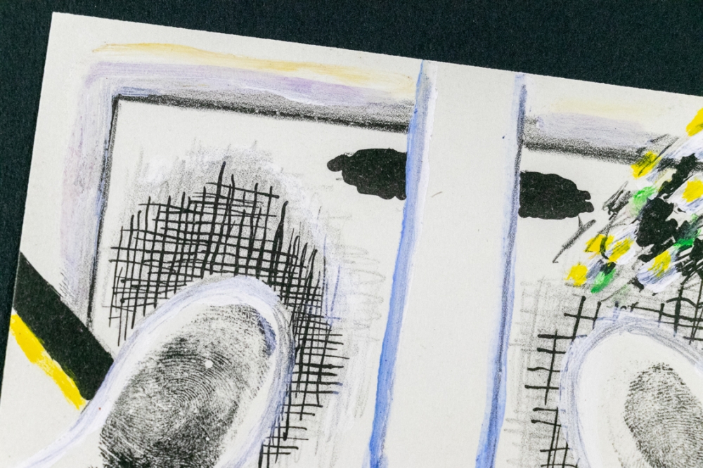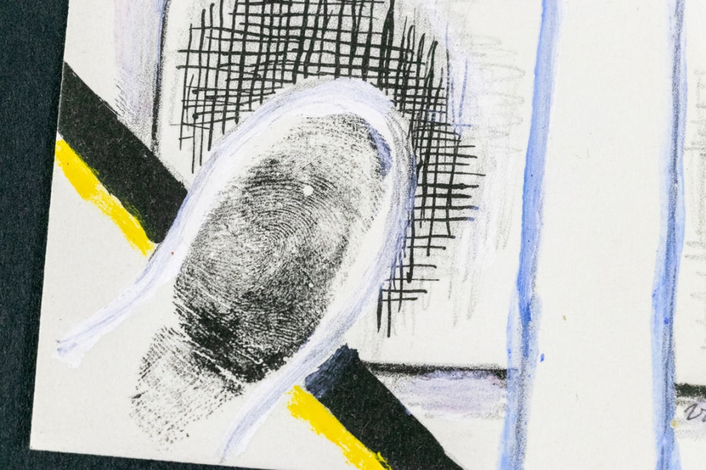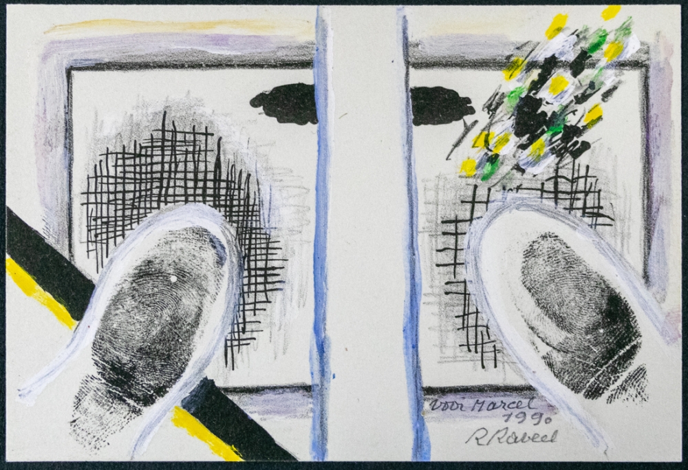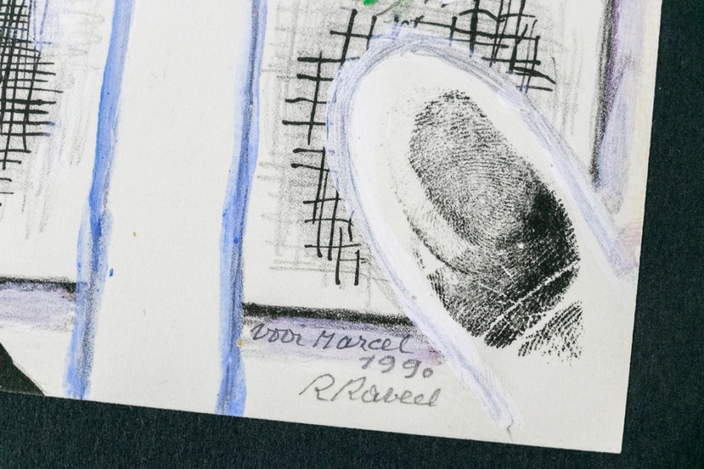 Original, unique drawing with ink and acrylic paint on paper by Roger Raveel.