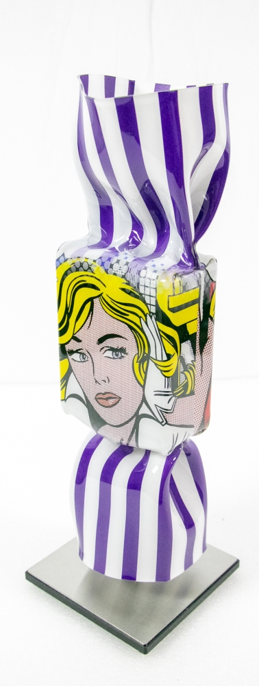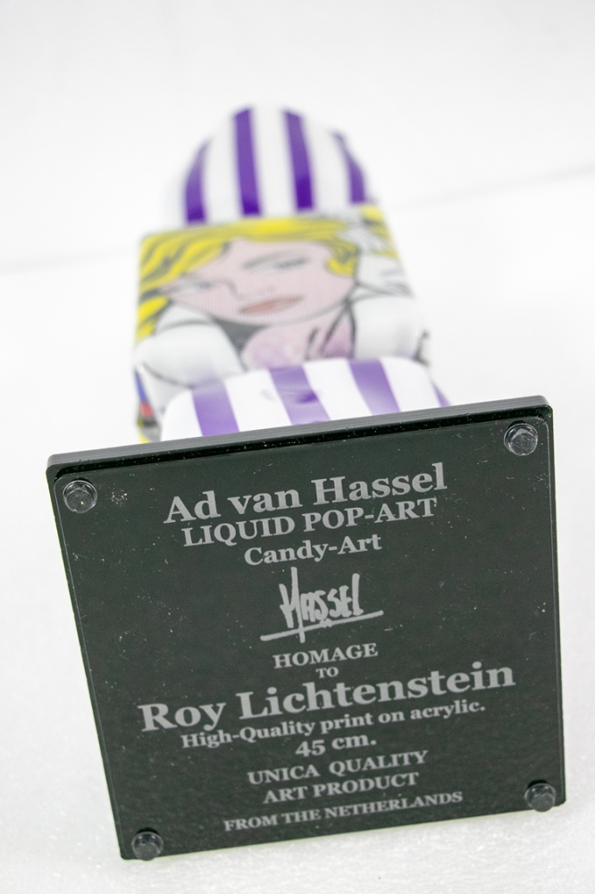 Medium format laser cut and folded perspex/plexi sculpture by Ad Van Hassel. Standing models on a luxurious silver-coloured stainless steel pedestal. With an engraved signature on the bottom of each Art Candy.