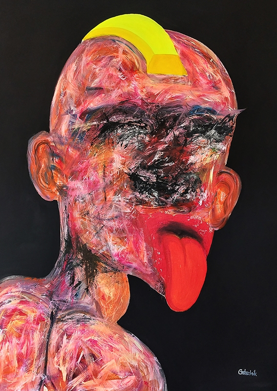 The work is a representation of a kind of protest, which we have probably all used at some point! It is a non-violent protest and can even be funny! Figurative expressionist or rather post expresionist work, combined with pop art elements, in which the attitude and mimicry of the character were pursued more than the physical details. To make it, multiple brush techniques, painting knife, but also pouring and splashing were used to create special fine art effects.