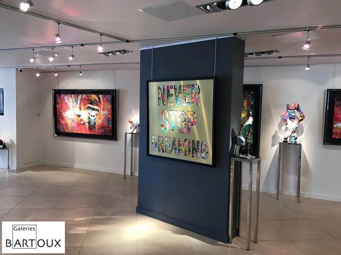 Ideal investment for companies and individuals. Unique work of art - 1/1 - P.U Work made of resin and acrylic, with fastener on the back Size 80cm x 80cm x 3,5cm Signed by the artist Gallery price: 15000 (check his works and prices on https://www.singulart.com/nl/artiest/aiiroh-11647) Born in southern France in 1987, Aiiroh is a French recognised artist. Aiiroh is a renowned Street artist for 10 years. Since 2010, his artworks has been exhibited in over 50 galleries around the world. In some of his works, he incorporates brands to remind people of their dependence on consumer products. The graphic strength of these brands also has a subliminal effect on our collective unconscious as well as on our aesthetic codes. He simply declares himself as a follower of "pop artists" mixed with street influences. He created a series sold out in 2 weeks called "Mixed n Pop". The media was very different, without posters, just painting and the use in collage of real Swarovski stones. Following his Pop Art predecessors, Aïroh uses mixed and current media, such as collage of Swarovski crystals, acrylic paint, stencil, gel and posters. For the past six years, he has focused on the reinterpretation of iconic figures and pop symbols through posters that he finds in the streets of Paris, Marseille, Lyon, Toulouse, Narbonne, next to his old graffiti "spots". Two monumental pieces are on permanent display at the W Hotel in Switzerland. He worked in collaboration with the famous chef Nobu and the luxury watch brand Hublot. Aiiroh also designed an art bottle for the prestigious French vineyard Bertaud Belieu in St Tropez. His works have been collected by many celebrities, including great hip hop icons and international actors. It was exhibited during Art Basel in Fontainebleau - Miami. He is ranked among the best French artists in terms of results in auction house. This is your chance to collect an incredible masterpiece.