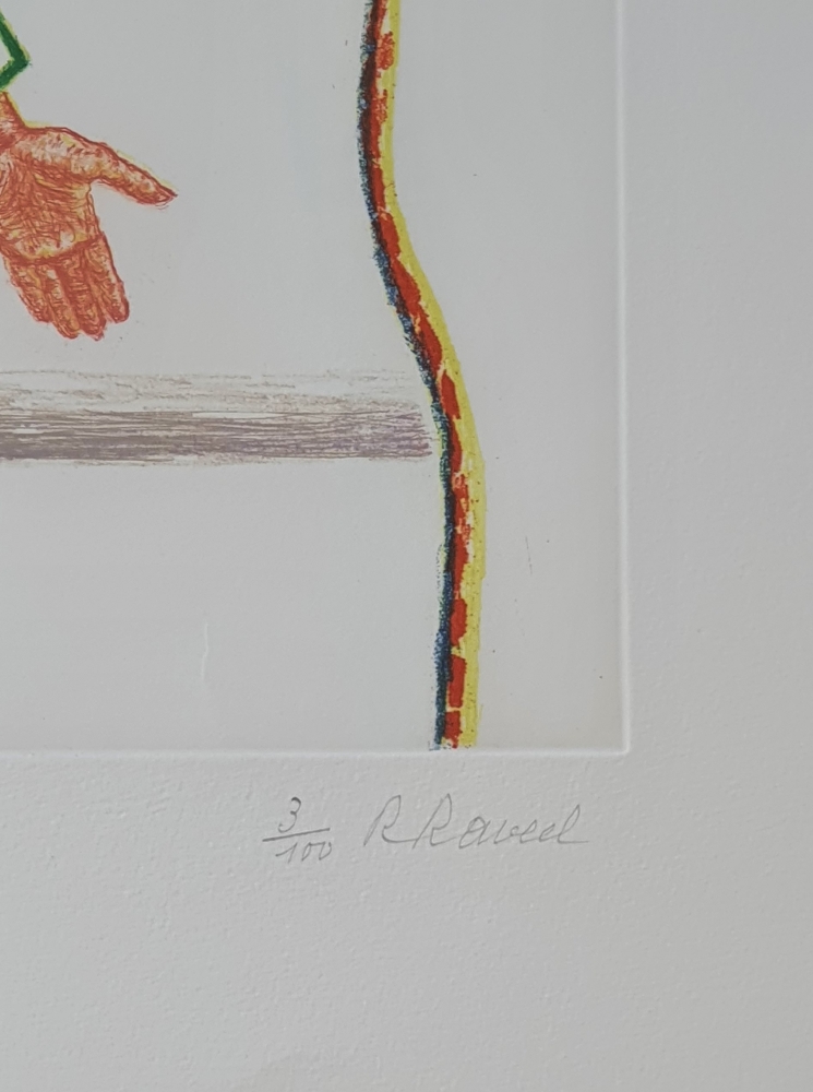 Very nice color etching by Roger Raveel. Etching dimensions: 295 x 395 mm. Blade dimensions: 785 x 575 mm. The work is framed with passe-partout. Due to a problem with printing, the entire run was not completed. Only 59 copies of these color etchings have been completed, signed and numbered from 1-48/100. This is copy numbered 3/100. See graphic oeuvre number 258 on page 204.