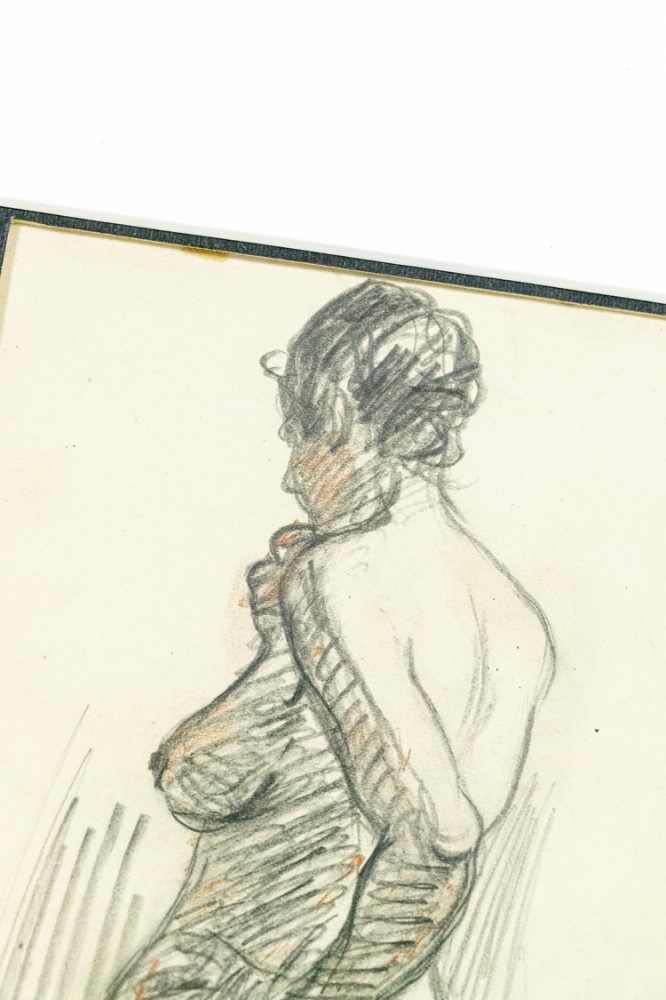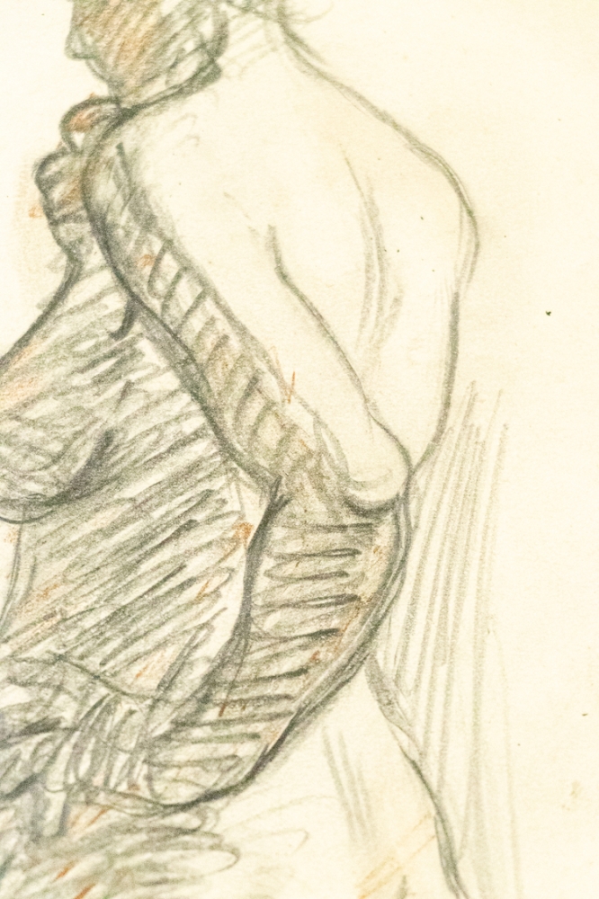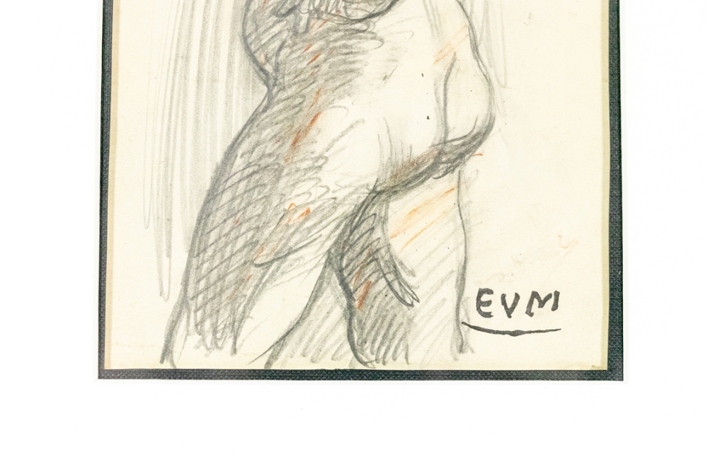 Potloodtekening van Eugene Van Mieghem, onderaan gesigneerd.