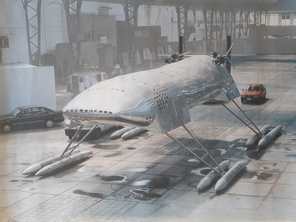Panamarenko - Scotch Gambit - 2000, signed "Panamarenko" in the plate. Very nice and large exhibition poster with blue text with all museums printed on the back. In very good condition. Will be sent in a waterproof tube with track & trace