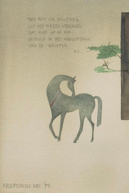 An original work by Kris Fierens from 1979w watercolor on paper Signed and dated lower right Framed. The seed of the work of Kris Fierens (born 1957 in Schoten, works in Antwerp) must be sought in the notion of 'movement'. The beauty and emotionality that a particular gesture or movement entails is the essence of Fierens' paintings and drawings. The subconscious plays a major role in this: the paint on the canvas is the result of a movement, propelled from the subconscious.