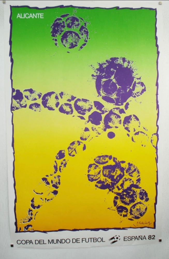 Copa del Mundo de Futbal. Espana. allicante. Poster / Lithograph 95x60 cm Press @ Clot, Bramsen et Georges, Paris Documentation: Frédéric Charron Alechinsky. Lesson Posters: p.53 no.86 + color reproduction