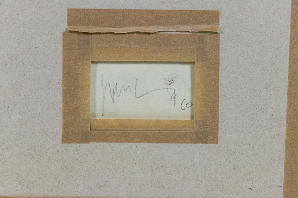 Watercolor on paper by Dan Van Severen. For this he used one color, a so-called "lavis". Signed by hand (visible through a transparent piece in the frame) on the back of the work.