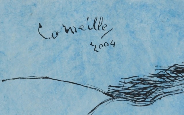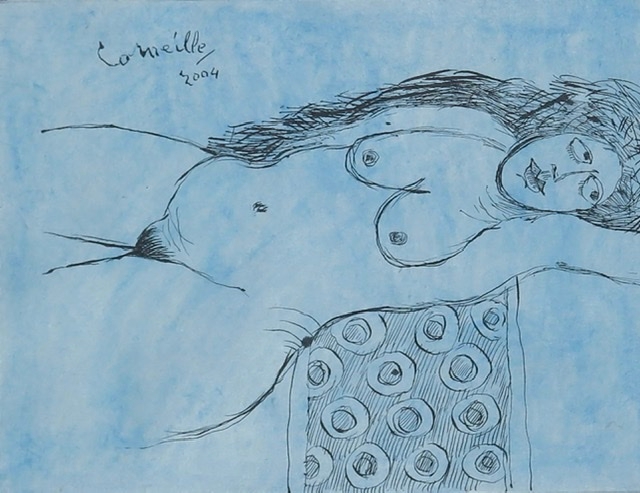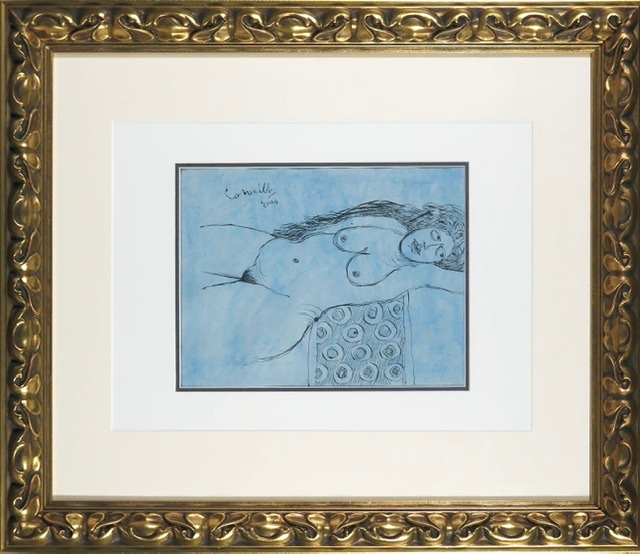 Beautiful ink drawing on Japanese paper painted in blue of a reclining nude. Signed and dated by hand upper left. With frame the work measures 60 x 70 cm without frame 24 x 31 cm. Signed and dated