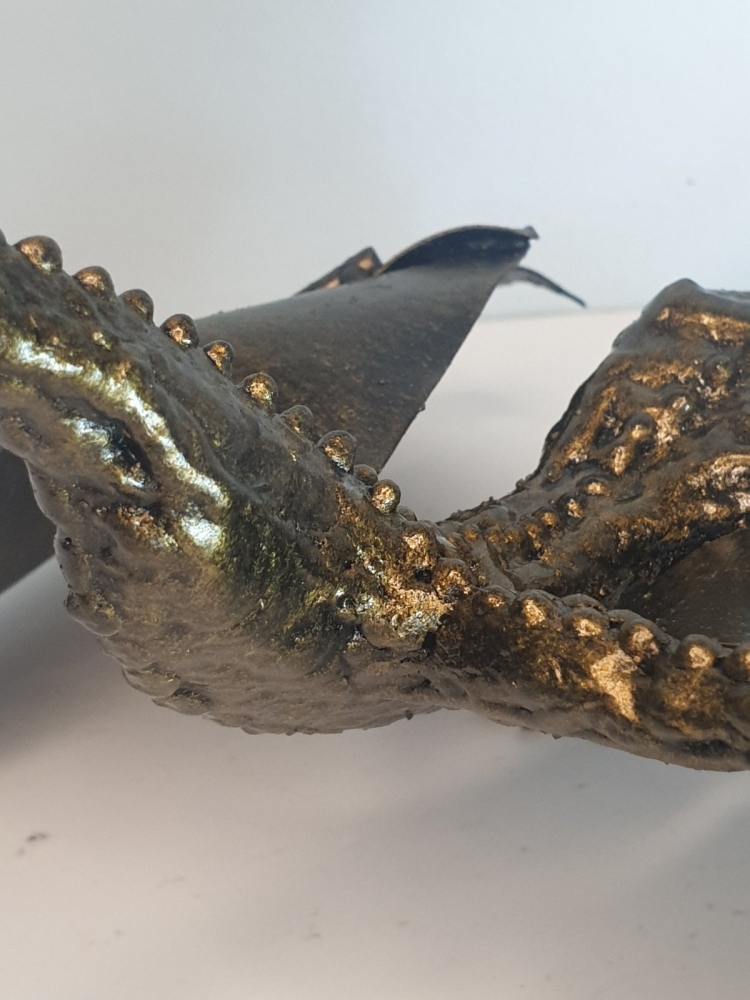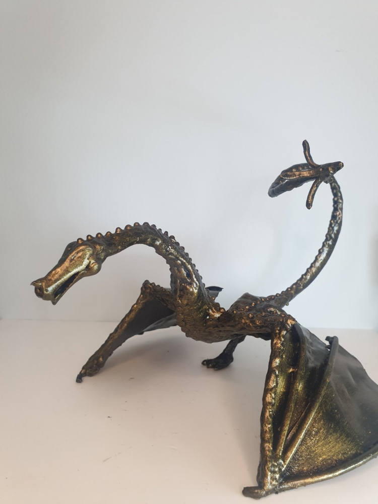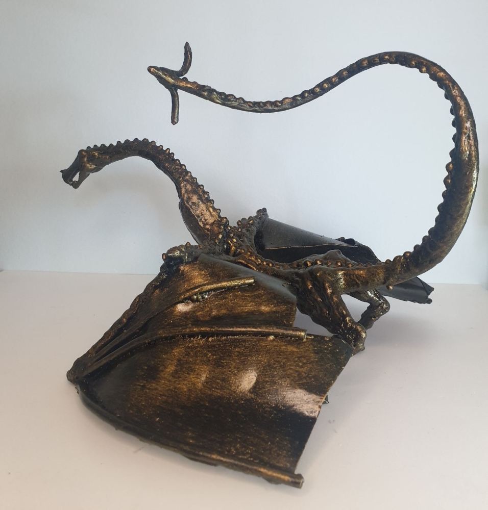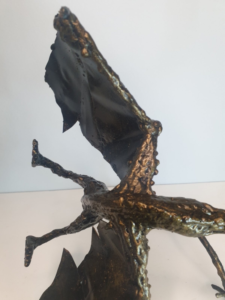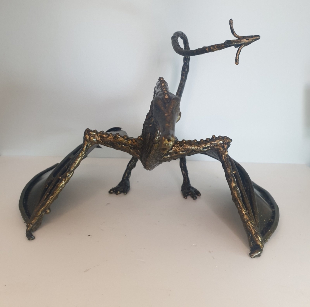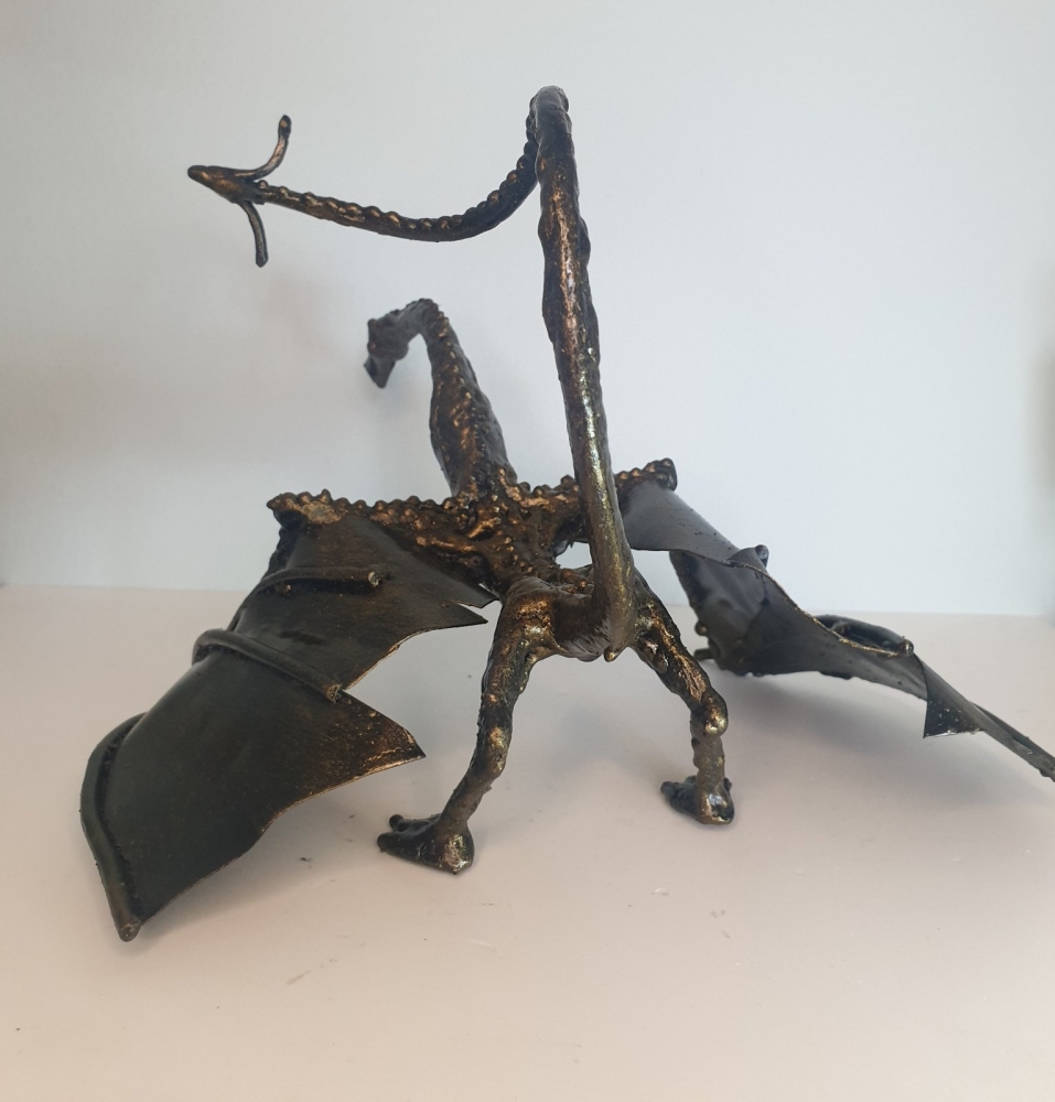 Golden Wyvern (Dragon), sculpture from S-art studio. Unique welded and forged metal sculpture,it is not a casting. Material: carbon steel, color: black with golden wax, sprayed with transparent spray for protection. One of a kind work, comes with a certificate of authenticity. IMPORTANT NOTE: SHIPPING TO THE EU ONLY - NO SHIPPING TO NON-EU COUNTRIES.