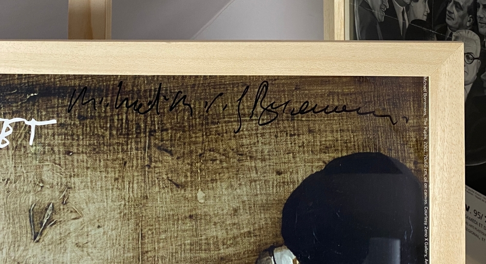 Beautiful hand signed poster by one of the most important Belgian artists Michaël Borremans. He signed this poster at his exhibition at the Moderna Museet in Stockholm, Sweden. The poster was professionally framed and measures 75 by 105 centimetres.