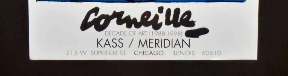 Beautiful color lithograph on slightly satin paper by Corneille from 1998. Dimensions sheet 76x50 cm in new condition. The work is not signed. Edition of 200 ex not numbered Beautiful color lithograph by Corneille from the year 1998. Title: Image du Paradis . The bold letters under the work, Kass / Meridian from Chicago, is the gallery where Corneille had an exhibition in 1998. The thought was: if you buy a lithograph, you will receive an unsigned copy on lightly satin-finished paper. If the texts on this lithograph disturb you, you can have them placed under the passe-partout. All in all, quite a nice lithograph with a story