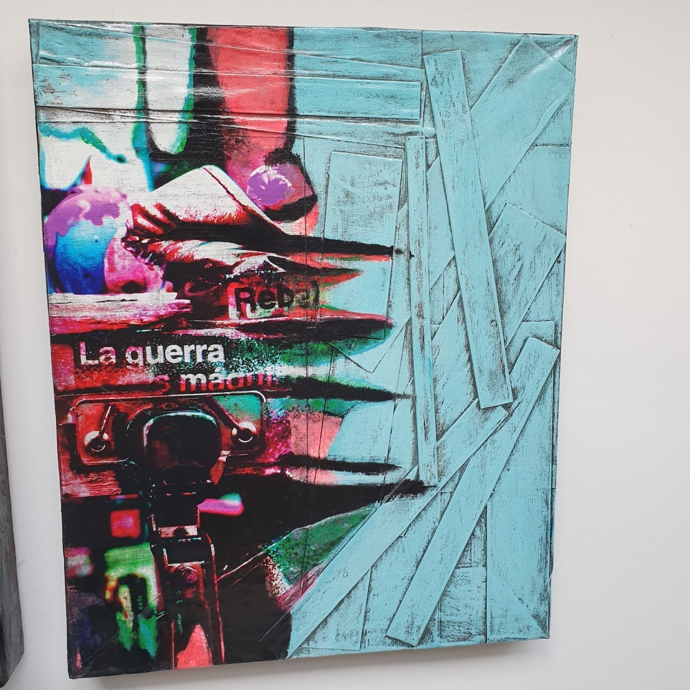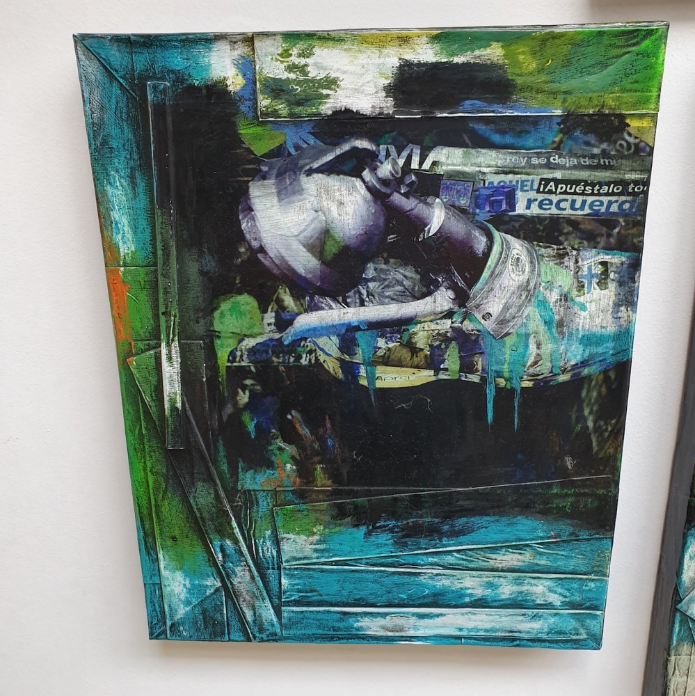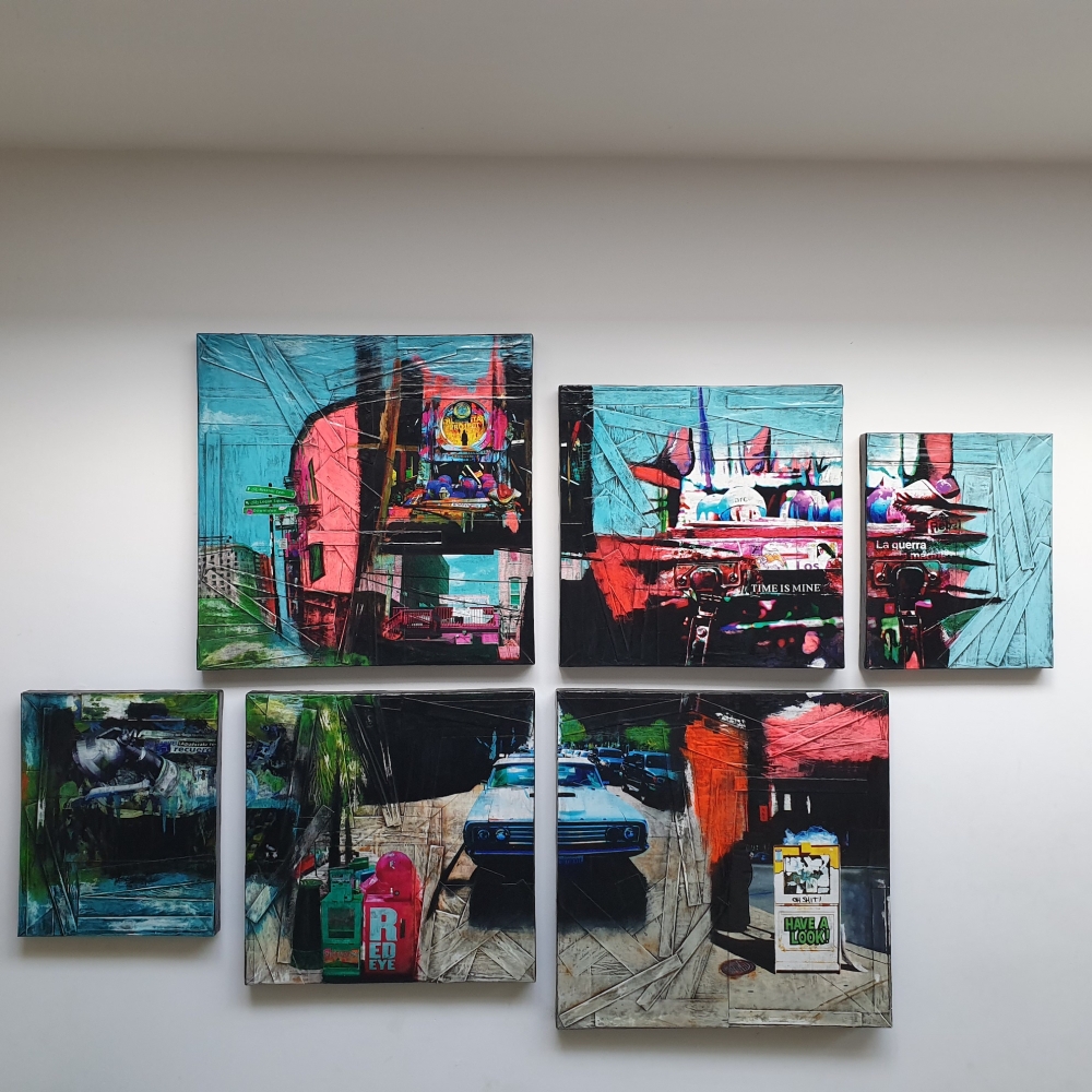 Mixed on Canvas A 6 part made in 2011 by artist duo Abstractus (Steevens & Vélez) Ximena Steevens and Mauricio Velez have been the artist duet known as Abstractus since 2002, when they decided to summarize all their material and conceptual experimentation and research (personal and aesthetic) into a concept, to reflect the truth in ways that help to to find freedom from the turbulent world around us. Theirs has been an evolutionary process of shared exploration across Europe, the US, Canada and Latin America. Their work is based on the use of collective thoughts and interpretations of the distinctive array of facets of life, consisting of emotional intersection motivated by their relationship (they are married) and different aesthetic experiences