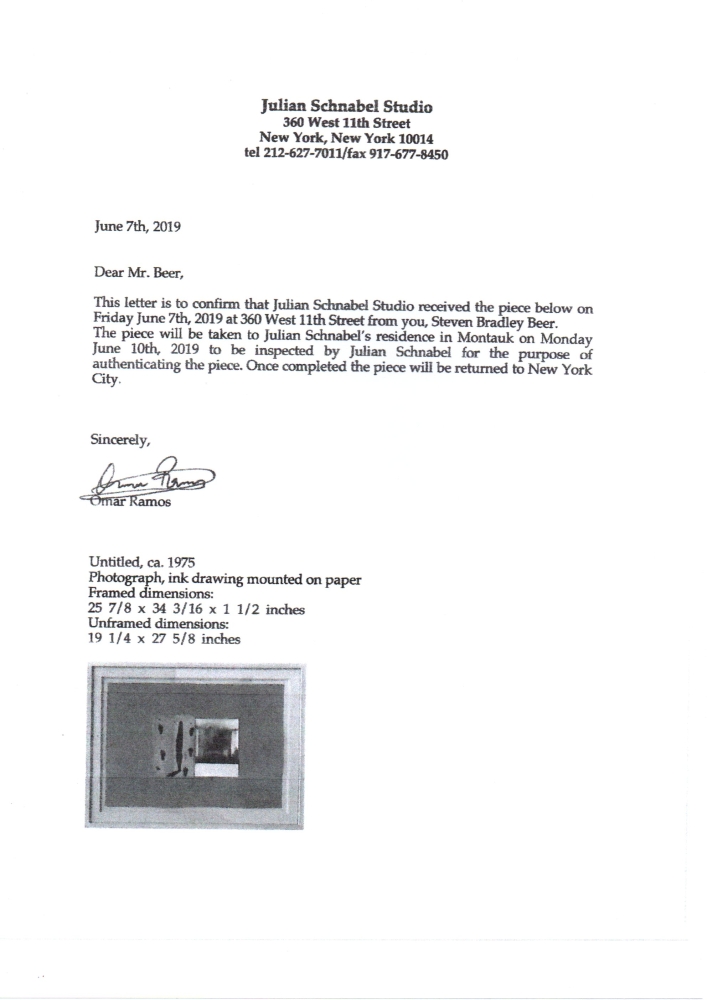 Photograph, ink drawing mounted on paper. Work is framed. Purchased by present owner from Guy Pieters Gallery in 1988. Work has a recent (2019) certificate of authenticity from the artist who personally inspected the piece.