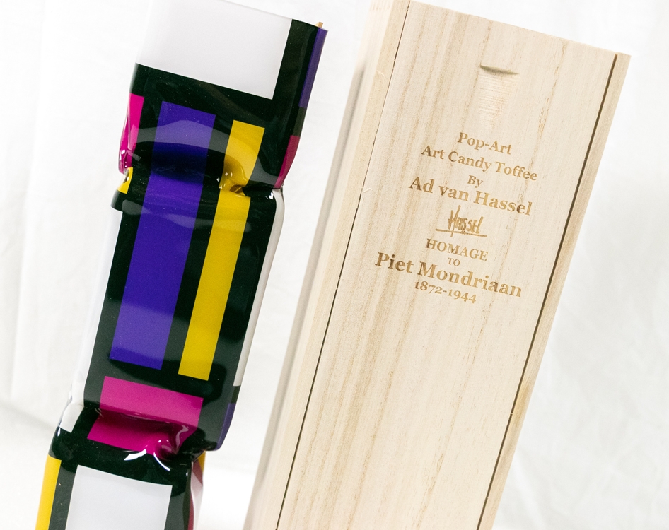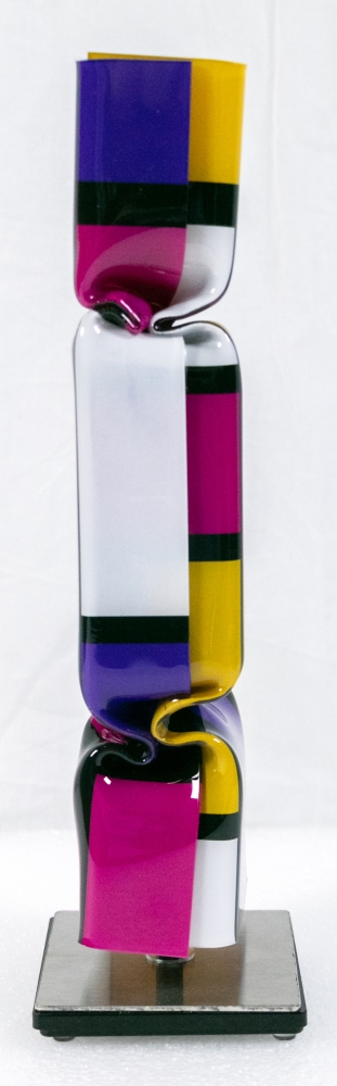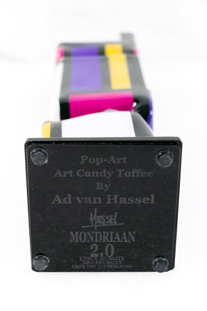 Laser cut and unfolded perspex sculpture by Ad Van Hassel. Standing models on a luxurious silver-coloured stainless steel pedestal. With an engraved signature on the bottom of each Art Candy.