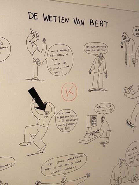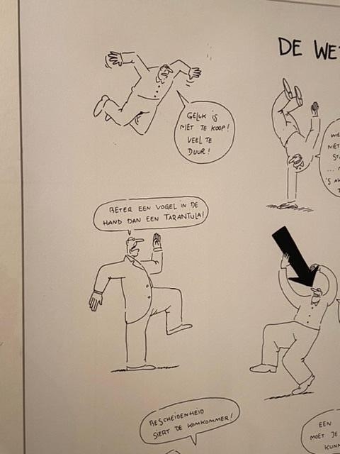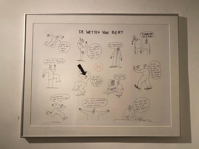 Beautiful funny screen print with the philosophical wisdom of Bert Vanderslagmulders. The silkscreen is signed with a red K. And numbered 165/200. The work is framed in an aluminum frame and is in perfect condition.