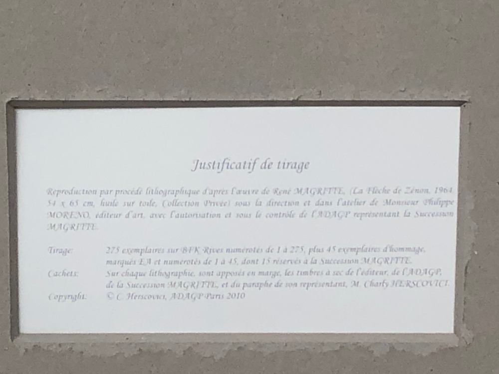 "la flèche de Zenon" 1964 ex. 116/275 original signed by C. Hersovici Litho is framed and in very good condition there are 2 litlle stamps in the front and 1 big stamp at the back with discription