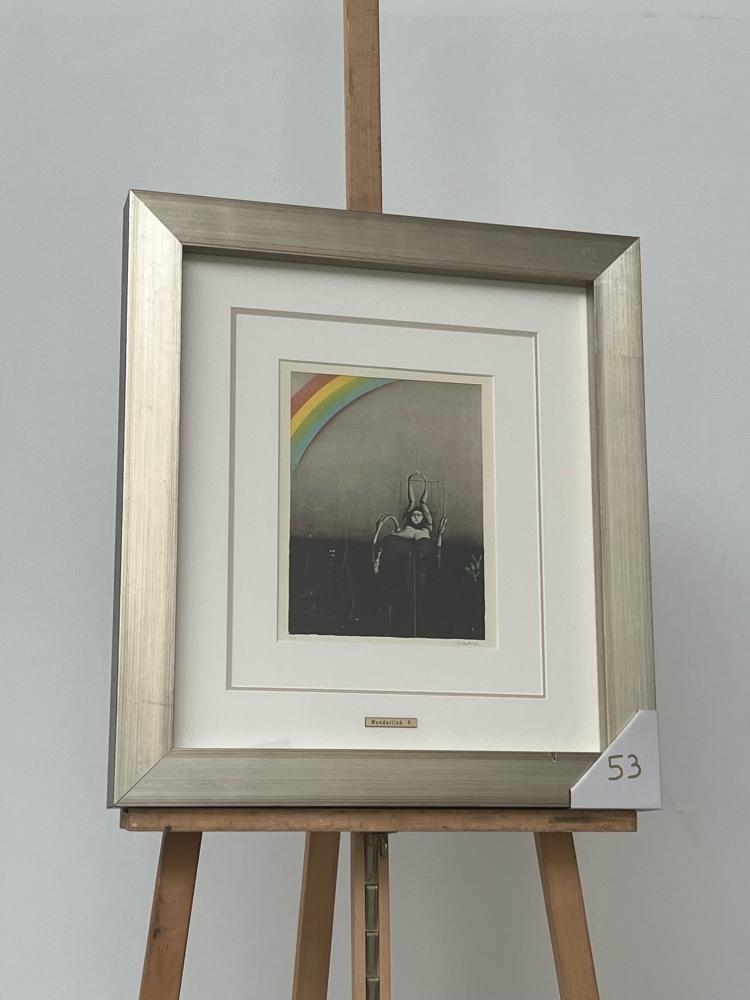 1927 - 2010 "untitled" this print is signed in the plate and with nameplate the print is after the original painting this print framed and in good condition size print 33cm x 35cm size with frame 60cm x 66cm