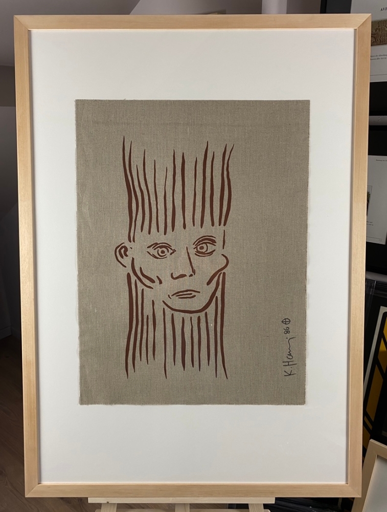 Beautiful screen print on canvas from the rare edition 'Portrait of Joseph Beuys' by Keith Haring. Only 90 of these were made. This being a signed copy. The work was professionally framed.
