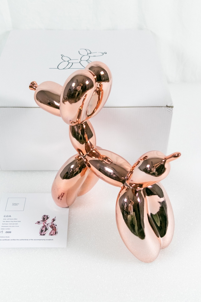 Resin sculpture after Jeff Koons, published by Éditions Studio. Edition limited to 999 pieces, of which this number is 829. The sculpture comes with the original packaging and is accompanied by the original certificate. Sculpture is in good to excellent condition.