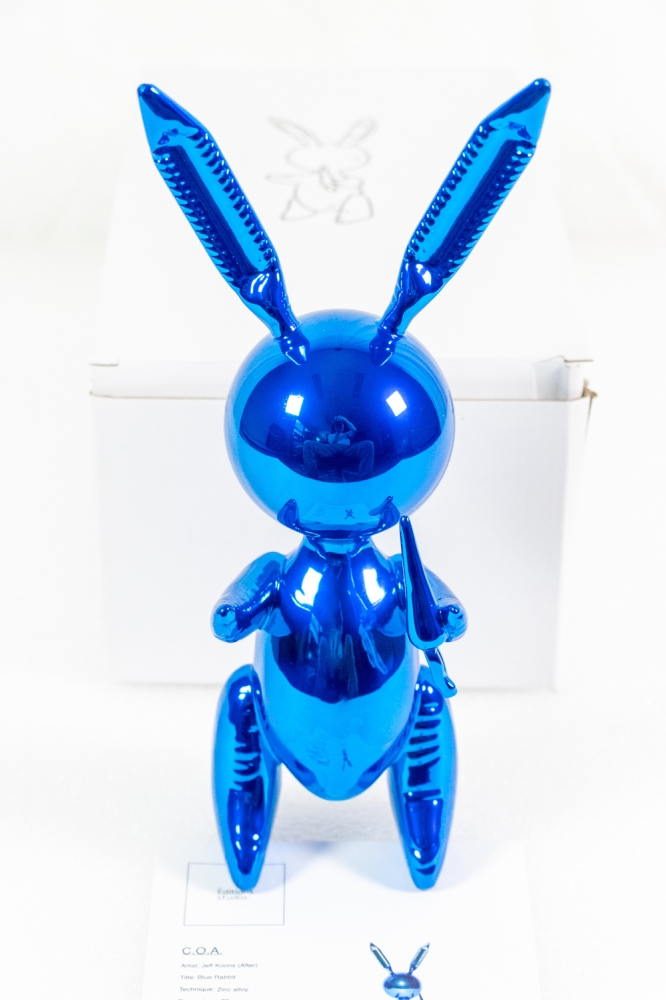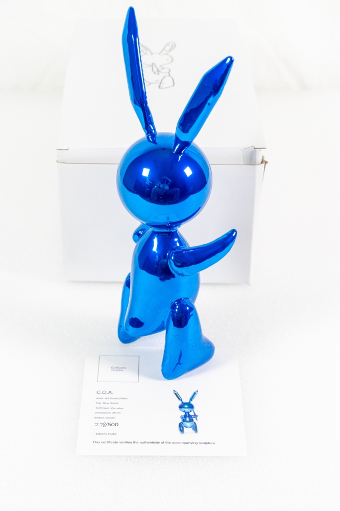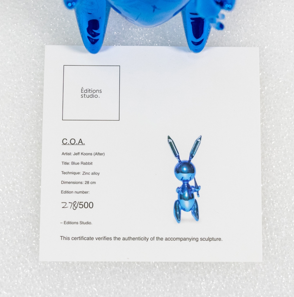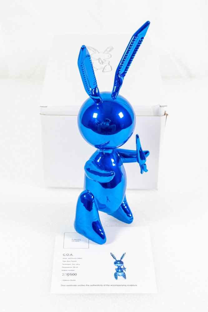 Balloon Rabbit released by Jeff Koons Rabbit's Editions Studio. The artwork is 33cm high, 13cm wide and 10cm deep. Comes in the original box (see photos) and certificate from éditions studio.