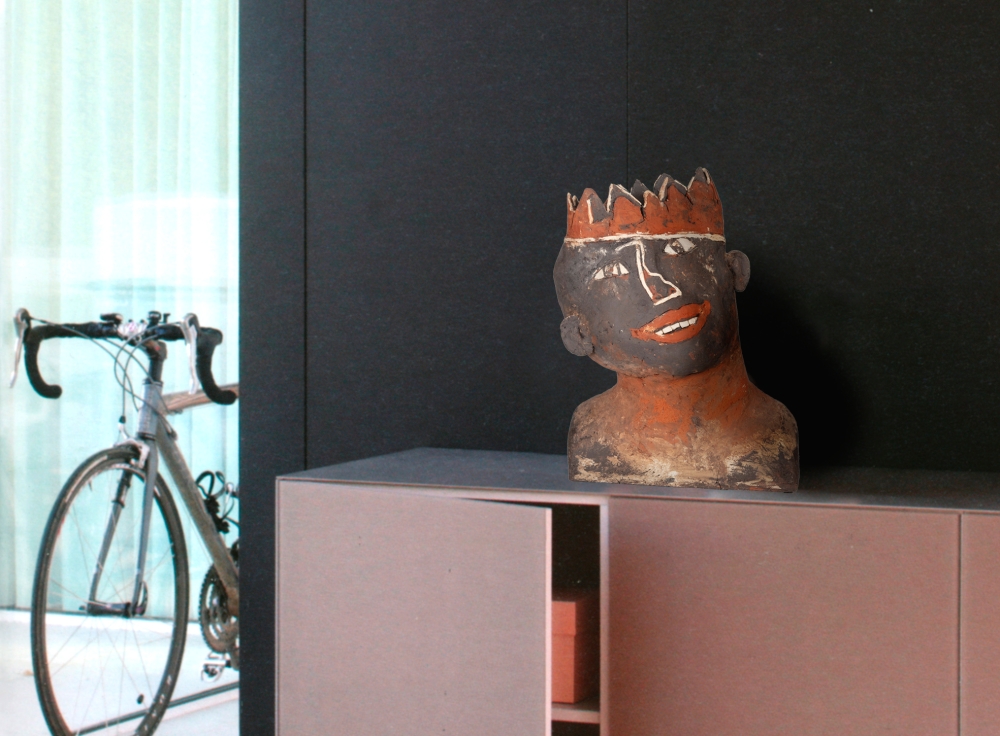 Piet Petillion ((1945-2020) Kunst was de rode draad door het leven van Piet Petillion. Tekenen, schilderen en piano spelen deed hij al van jongs af aan. Keramieken beeldhouwwerken kwamen er pas later bij maar kregen een prominente plaats in zijn oeuvre. Herman Van Rompuy schrijft in zijn voorwoord van het boek Piet Petillion: "Kunst ontstaat dikwijls als een soort noodkreet. Ongeluk wordt weggewerkt of verzacht door creatieve energie. Het negatieve wordt veranderd in iets positief. Kunst is vaak de uitdrukking van het verlangen naar het Verloren Paradijs. Piet Petillion is daar een groot voorbeeld van. Piet was een gewaardeerd lid van Rotaryclub Izegem. Van de kunstenaar worden geen werken meer aangeboden. Vandaar dat we bijzonder blij zijn dat de familie dit unieke stuk voor de veiling ter beschikking gesteld heeft. De titel Lof der Zotheid verwijst naar het satirisch werk van Erasmus, die daarin op ironische wijze prijst wat in de maatschappij zot is. Afmetingen 42x34x18d cm (Opmerking:'foto in decor': de schaal van het werk kan afwijken van de realiteit.)