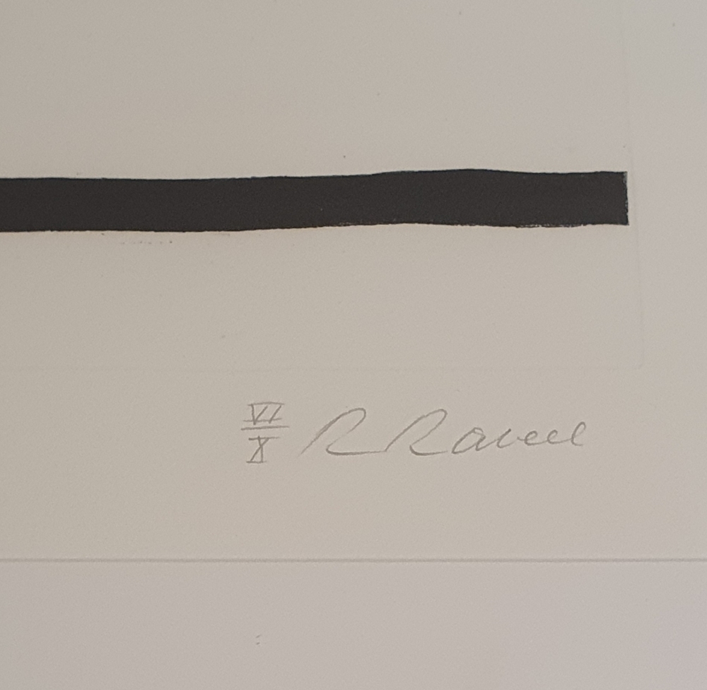 Zeer mooie zwart-wit ets van de Belgische kunstenaar Roger Raveel. Het werk is afkomstig uit één van de drie mappen met elk 5 etsen van 'Roger Raveel 1973'. Het volledige blad meet 50 x 65 cm. Het werk is correct ingekaderd. Het werk is gesigneerd en genummerd VI/X. Het werk wordt beschreven in het grafisch oeuvre onder nummer 32B3 op pagina's 57 en 59. Op verzoek kan een certificaat afgeleverd worden.