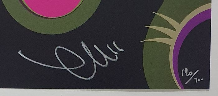 Takashi Murakami - Jellyfish Eyes Black - 300 copies Offset color lithography on sturdy, thick glossy paper, beautiful colors year: 2004 50 x 50 cm Hand-signed lower right in silver marker bottom right hand numbered in silver marker 181/300 Comes with a certificate of authenticity from the gallery in Madrid. In good condition, never framed and always kept in a dark drawer. Takashi Murakami (村上 隆, Murakami Takashi; Itabashi, Tokyo, February 1, 1962) is a Japanese artist who works in traditional media such as painting, as well as in new, digital and commercial media. He tries to blur the boundaries between manga higher and manga lower art and is seen as one of the founders of the Superflat style. This style is characterized by large uniform areas of color and figures inspired by anime and manga. In 2008, Takashi Murakami was named in Time magazine's list of 100 most influential people. He was the only visual artist to appear in it. Since 2003 he has worked with Marc Jacobs for Louis Vuitton. (source: wikipedia)