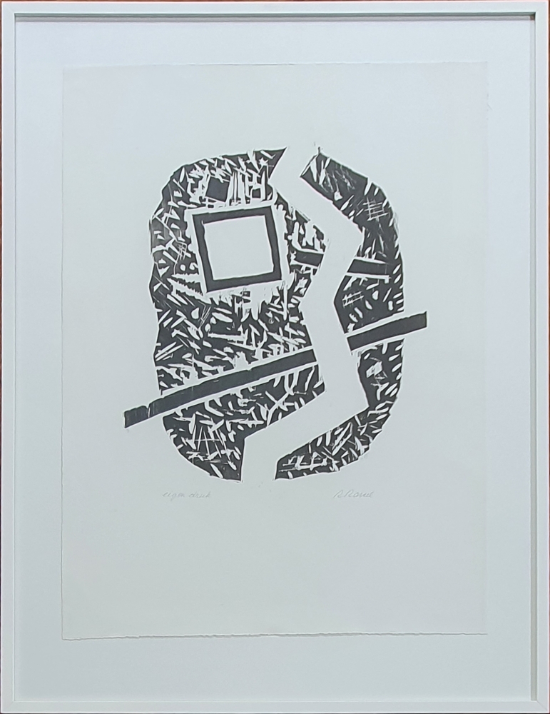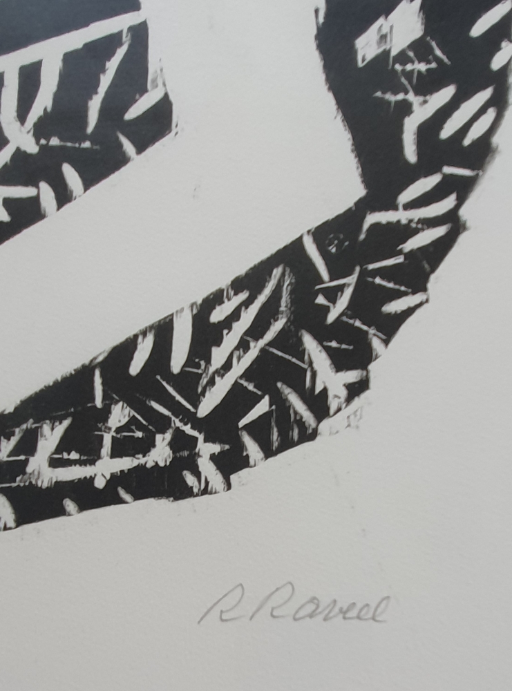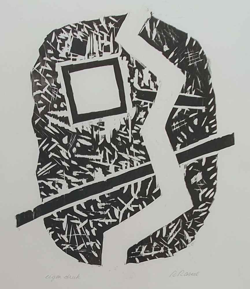 Beautiful large black and white woodcut by the Belgian artist Roger Raveel. The work is framed in a floating frame. The work is signed and marked 'own print'. The work is described in the graphic oeuvre under number 114 on page 110. A certificate is provided on request.