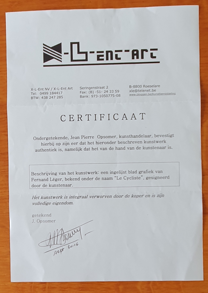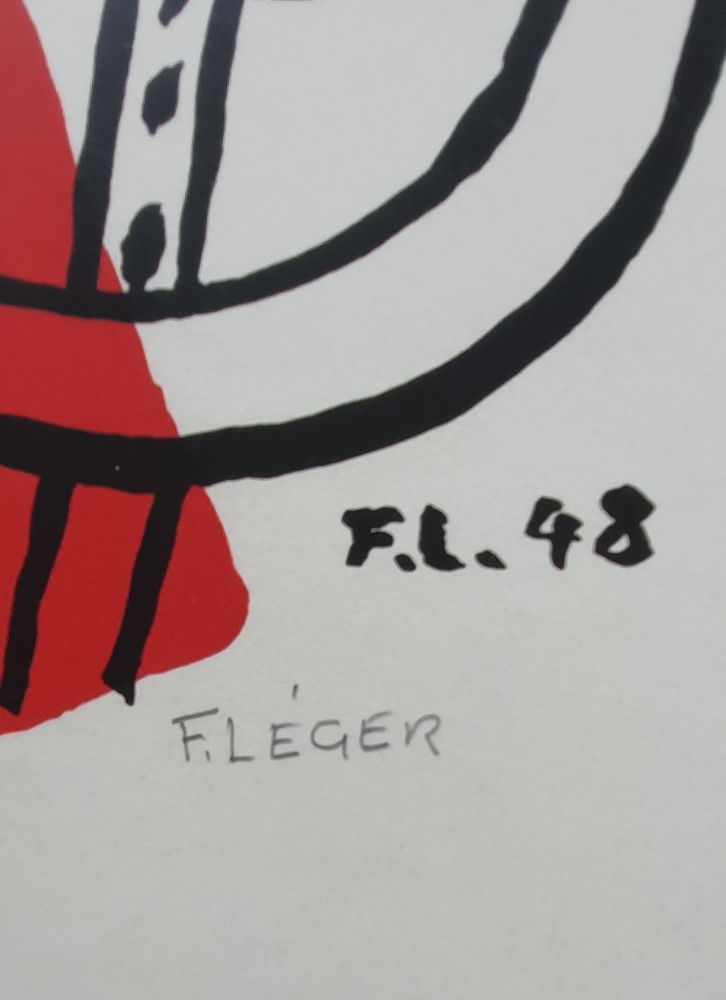 Beautiful large color lithograph by Fernand Léger. Le Cycliste. The work is originally signed and is numbered 55/150. The work is framed with passe-partout.