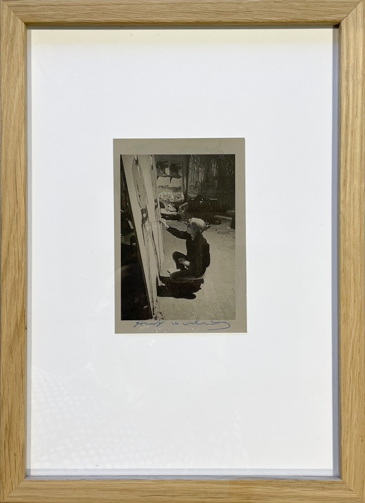 Signed print of a photograph by Andy Warhol. Includes letterpress "ANDY WARHOL" on the front and stamp on the back. Copy is framed and in good to excellent condition.