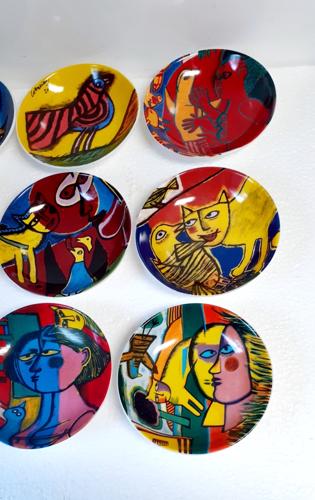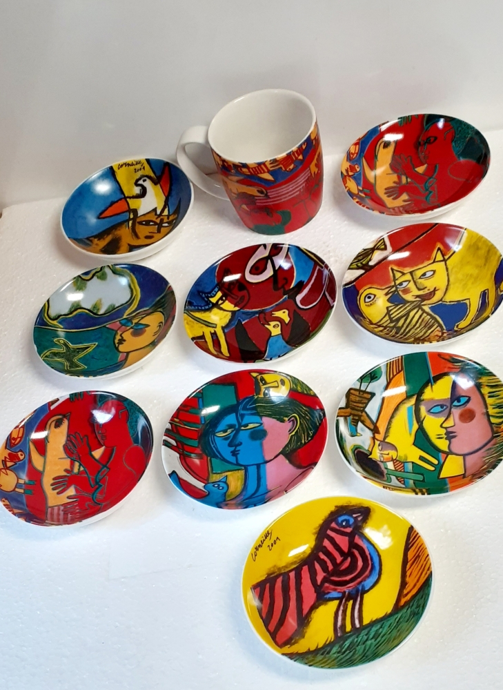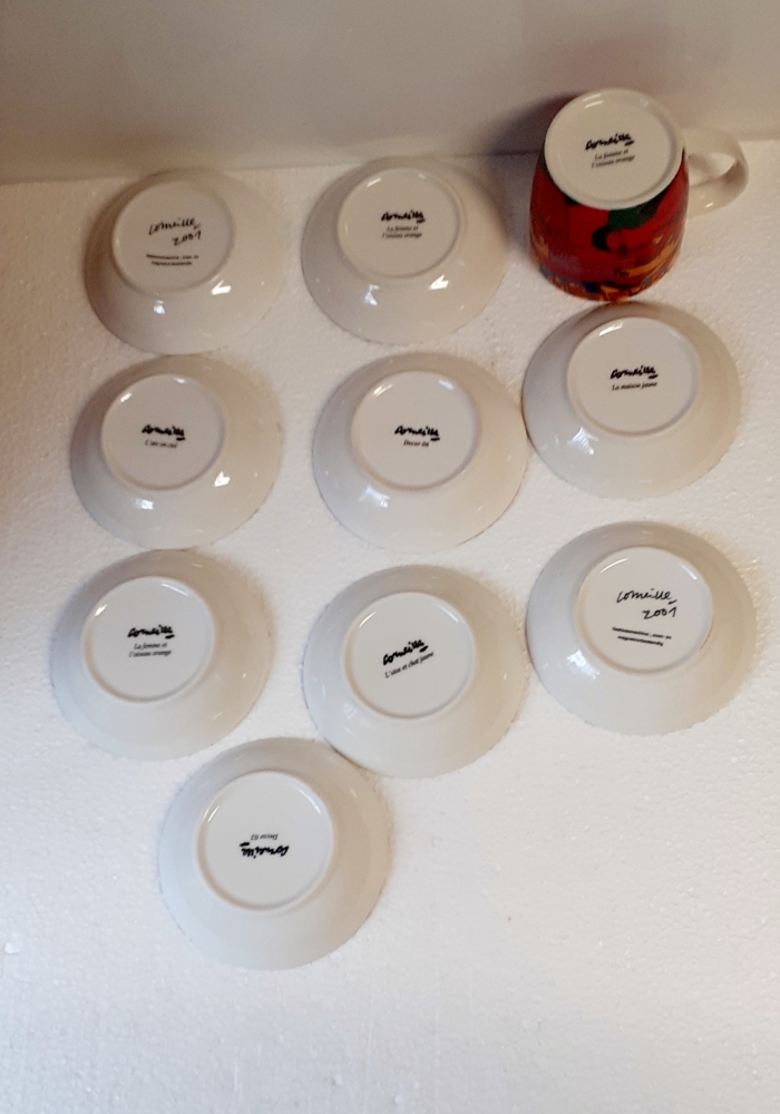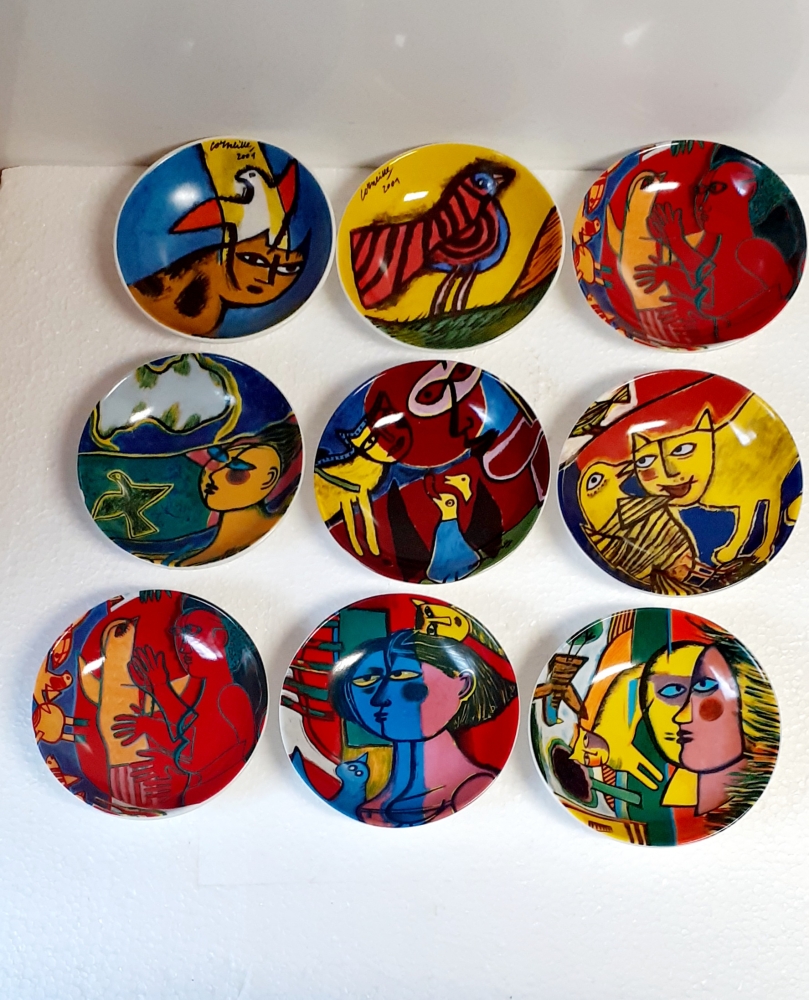 Guillaume Corneille Special Editions Corneille (1922-2010) Set of 9 ceramic Corneille dishes and 1 cup They are very colorful really an I catcher for every room Diameter: 12cm Am I in a very good state Signed: Corneille. Will be well packaged and sent by registered mail with track and trace.