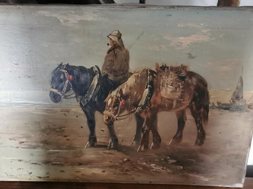 painting signed by Henry Schouten - framed - to be restored (a small tear in the canvas). Unique work on canvas. Belgian animal painter was born in Indonesia around 1857 and died in Brussels in 1927. He was better known under the pseudonym Joseph Klaas. He studied at the Academy of Brussels from 1876 to 1881.