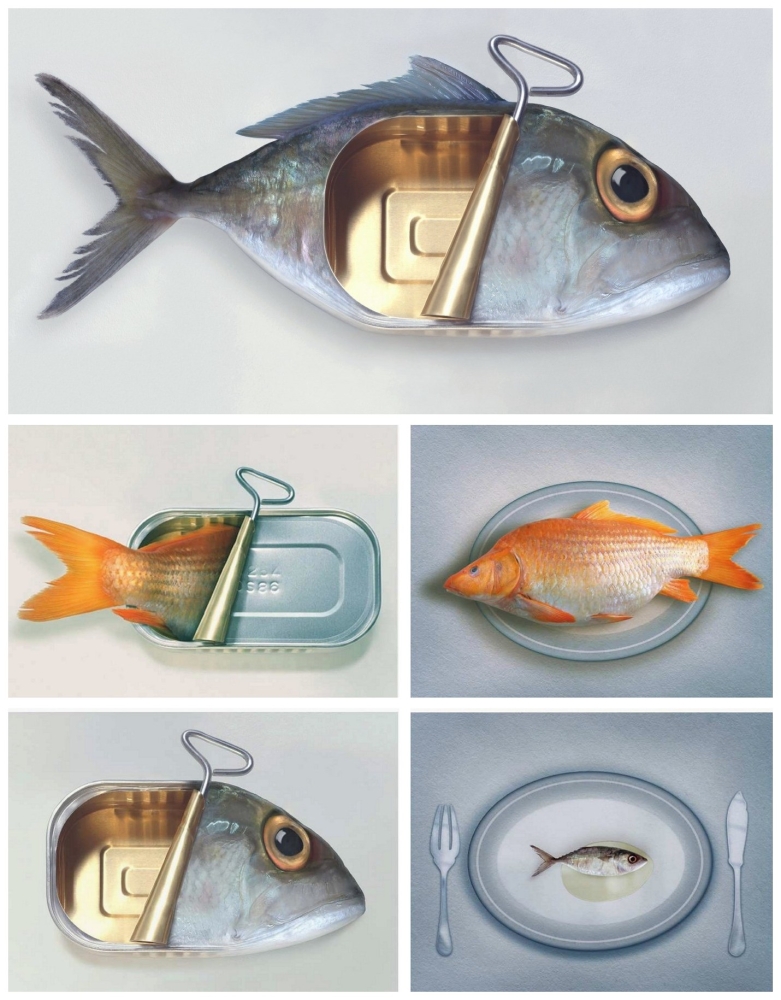 ● 'Surreal Fishions' Folio ● Five chromogenic prints on Fuji Crystal Archive paper ● Paper Size - 10" x 8" (25 x 20 cm) ● Image Size - 9" x 7" (23 x 18 cm) - x 4 ● Image Size - 9" x 5" (23 x 13 cm) - x 1 ● Edition Size - Open ● Hand-signed on rear with Gallery Stamps ● Signed Certificate of Authenticity ● Condition - Mint ● Ships in a large PVC tube with track & trace