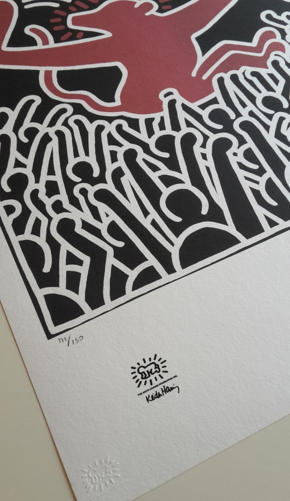 Keith Haring (after) Lithograph after the 1985 original 'Untitled'. Signed in the plate and numbered 111/150. Certified with embossed stamp and ink stamp of 'The Keith Haring Foundation'. Dimensions: 50*70 cm