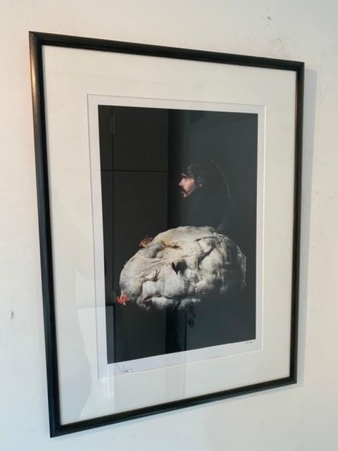 Beautiful photo print by Koen Vanmechelen featuring himself. Perfect condition. at 100 ex. Numbered and signed Koen Vanmechelen is a contemporary Belgian conceptual artist. He started his career in the early 1990s. Biocultural diversity is central to his work. On this theme, Vanmechelen also collaborated with scientists from various disciplines