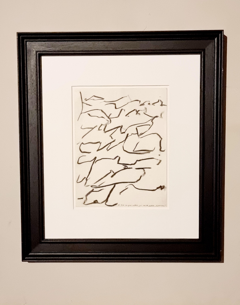 Unique work by Christian Dotremont. Logogramme à texte incertain - "Je suis un gros cretin qui use de pastel. A title with a big nod to this special pastel work from 1965. Signed, titled and dated on the front. Gallery label on the back Professionally framed with museum glass. Provenance: *Gallery Antoine Laurent *Family of the artist