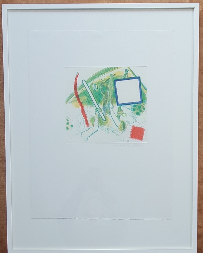 Very nicely framed color etching by the Belgian artist Roger Raveel, entitled 'Procession (ii)', referring to the painting procession that is often found in Raveel's works. The work has a floating frame and is in very good condition. The work is signed, stating '1st state' and numbered 2/20. The work is described in the graphic oeuvre under no. 165 on page 138. Gallery price of this work is 3500. Unique opportunity to acquire such top-class work. The winning bidder will also receive a copy of the three-part book series 'Roger Raveel: The overview.' See last photo.