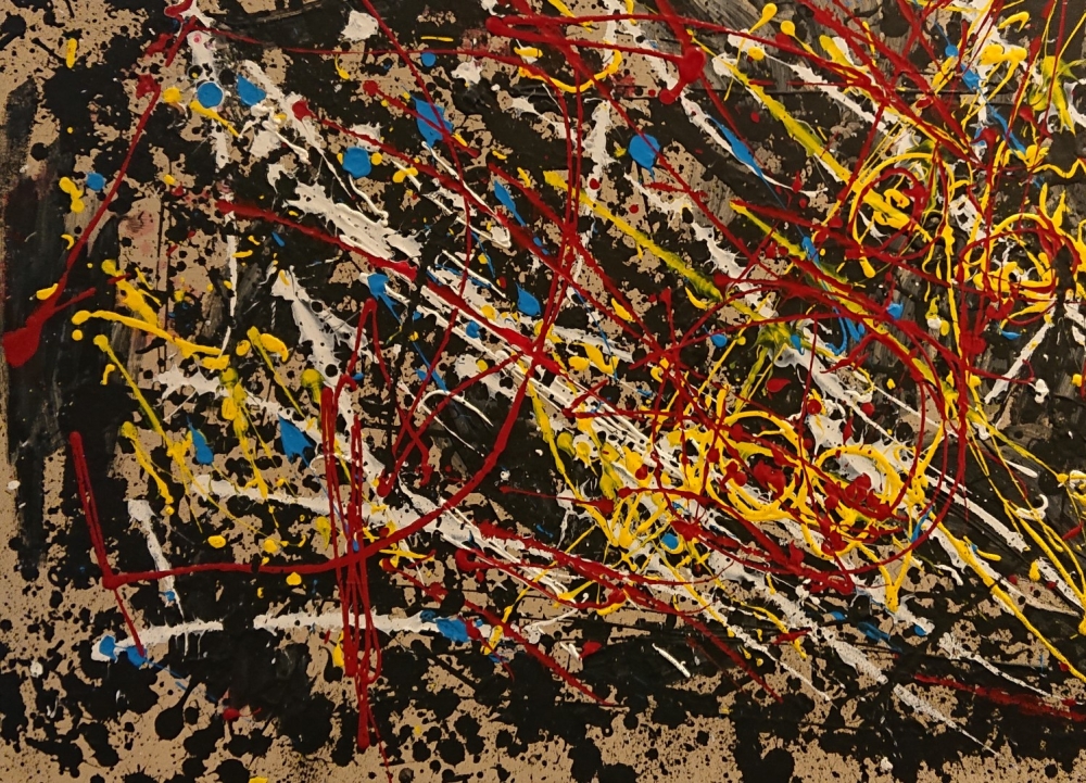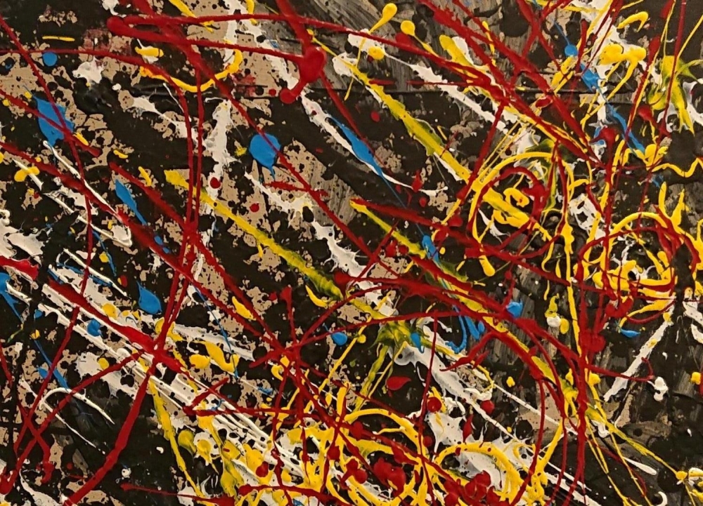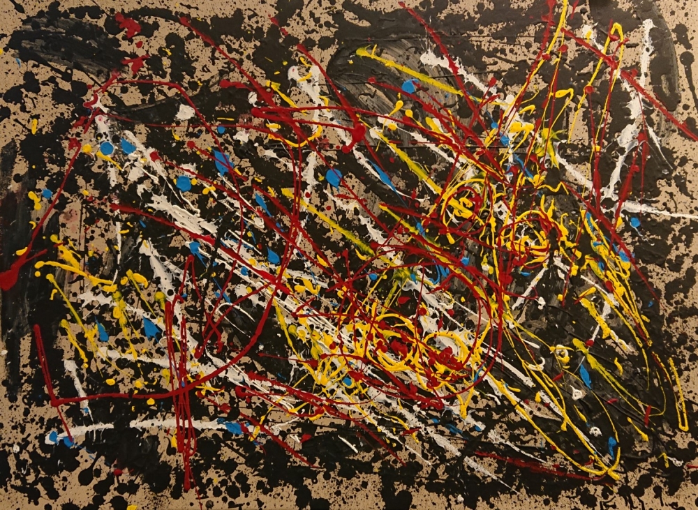 Here a work, which was executed in the so-called "POLLOCK" style, the 1950s/80s in NEW YORK, the artist, Jackson POLLOCK, was discovered by andy warhol, and art collector / star, PEGGY GUGENHEIM "