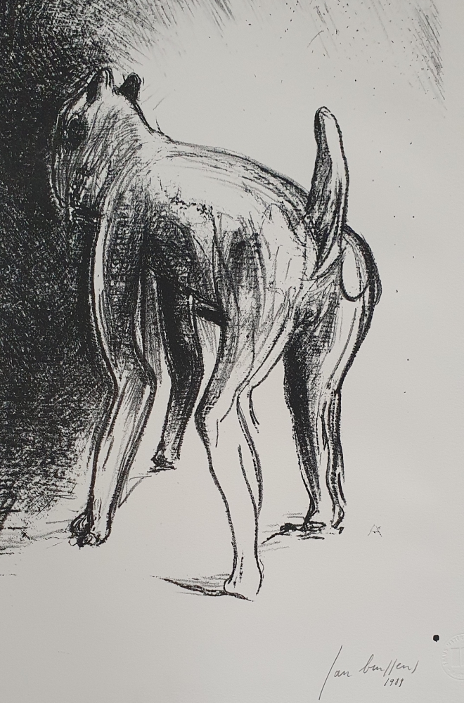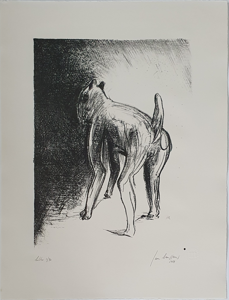 Beautiful black and white lithograph by the Belgian artist Jan Burssens. The work is signed in pencil and numbered 3/90. The piece measures 66 x 50 cm. The work is in good condition and has not been framed.