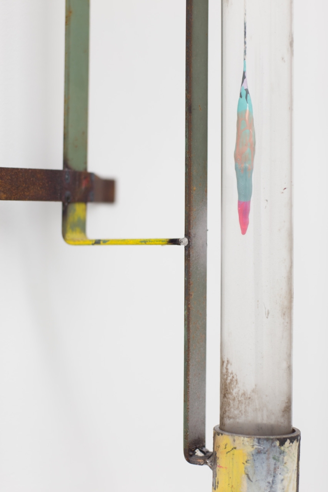 Zo ‘vernietigend’ als zij is, de kunst van Willem Boel is wel degelijk diep geworteld in een zekere historie, met vruchtbare/veelbelovende vertakkingen in het heden. Ik denk allereerst aan de Machines Inutiles van Bruno Munari, die al in de jaren dertig trachtte (parallel aan de Rotoreliefs van Duchamp en de eerste mobiles van Calder) een nieuwe dimensie toe te voegen aan het esthetisch onderzoek, door schamele en industriële materialen te verwerken in sculpturale projecten met een open karakter, “bedoeld om luie honden te laten kwispelen, de dageraad te voorspellen (of) muziek te maken met de hik”. Zoals Munari decennia later vertelt, werden zijn pogingen om de kunst te overstijgen niet onmiddellijk met succes bekroond: “[Mijn vrienden] hadden thuis vrijwel allen één van mijn nutteloze machines, maar ze brachten die onder in de kinderkamers, omdat ze absurd leken en nergens toe dienden, terwijl ze in hun kamers pronkten met beelden van Marino Marini en door Carrá of Sironi gesigneerde schilderijen. Natuurlijk, vergeleken met een schilderij van Sironi, met de diepe indruk van de emotie, kon ik met mijn touwtje en mijn karton moeilijk verwachten dat ik serieus zou worden genomen.” Serieus genomen worden lijkt gelukkig niet het hoofddoel te zijn van Willem Boel, die de titel Sancho don’t care meegeeft aan een emblematische serie onderzoeken. Betonmolens, getransformeerd tot molens door het vastlassen van frêle, stalen armen waarop monochroom doek is bevestigd: deze maalmachine hoeft geen aanval te vrezen. Zij geeft de zekerheid dat het schilderij eindeloos blijft draaien, in een edele en sentimentele wals naar het beeld van de composities van Ravel, voorafgegaan door het passende motto: “…het zalige en telkens nieuwe genoegen van een nutteloze bezigheid”.